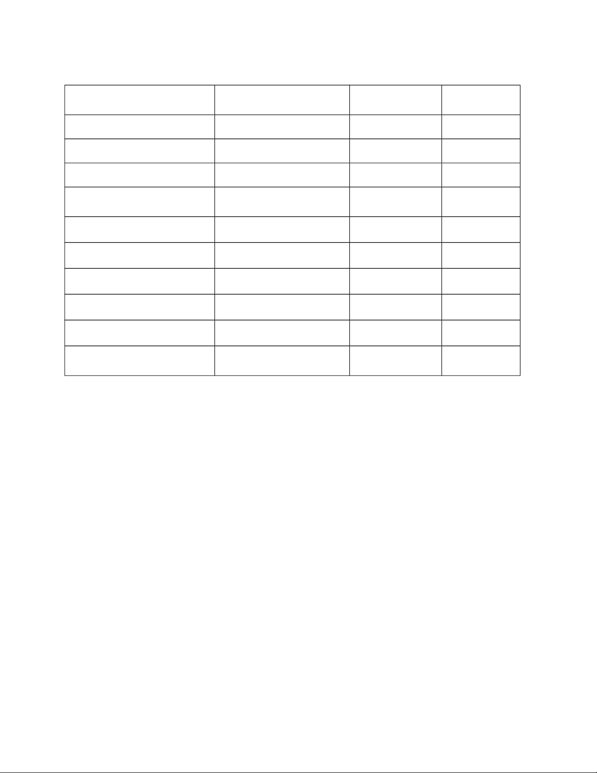 Bảng đánh giá các thành viên: Tên thành viên Nhiệm vụ Nhóm trưởng Giảng viên đánh giá đánh giá 1. Nguyễn Ngọc Hiếu 2. Vũ Minh Hiếu 3. Nguyễn Anh Hoa 4. Trương Thị Thanh Hoài 5. Vi Huy Hoàng 6. Bùi Thúy Hồng 7. Đồng Thị Hồng 8. Giáp Thị Huế 9. Phạm Thị Huệ 10 . Hoàng Quỳnh Hương