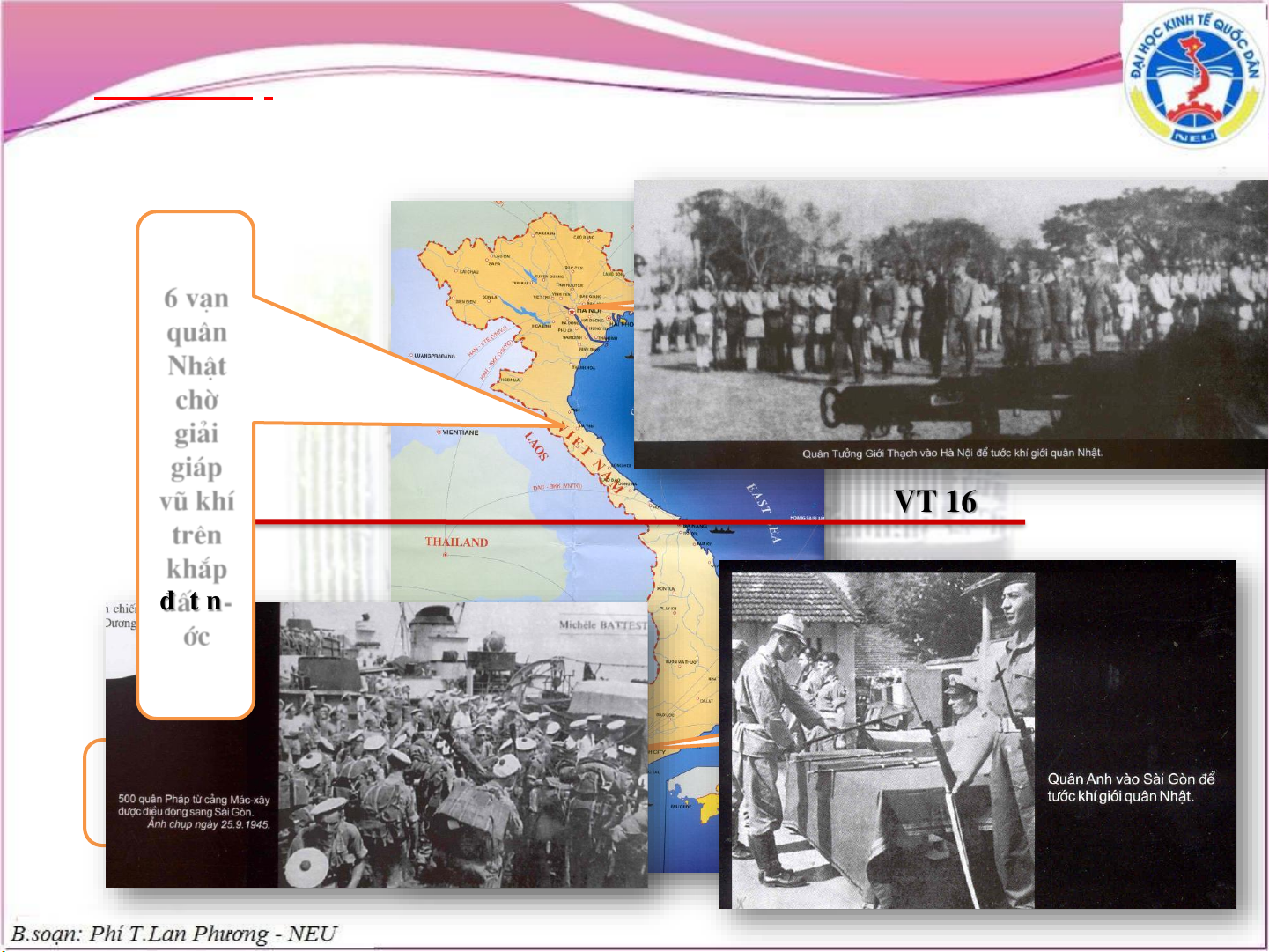 (ViÖt Quèc - ViÖt C¸ch) 6 v¹n ë phÝa B¾c qu©n NhËt chê gi¶i gi¸p vò khÝ VT 16 trªn kh¾p ®Êt n- íc 1 v¹n qu©n Anh ë phÝa Nam Qu©n Ph¸p quay l¹i x©m lîc lÇn 2