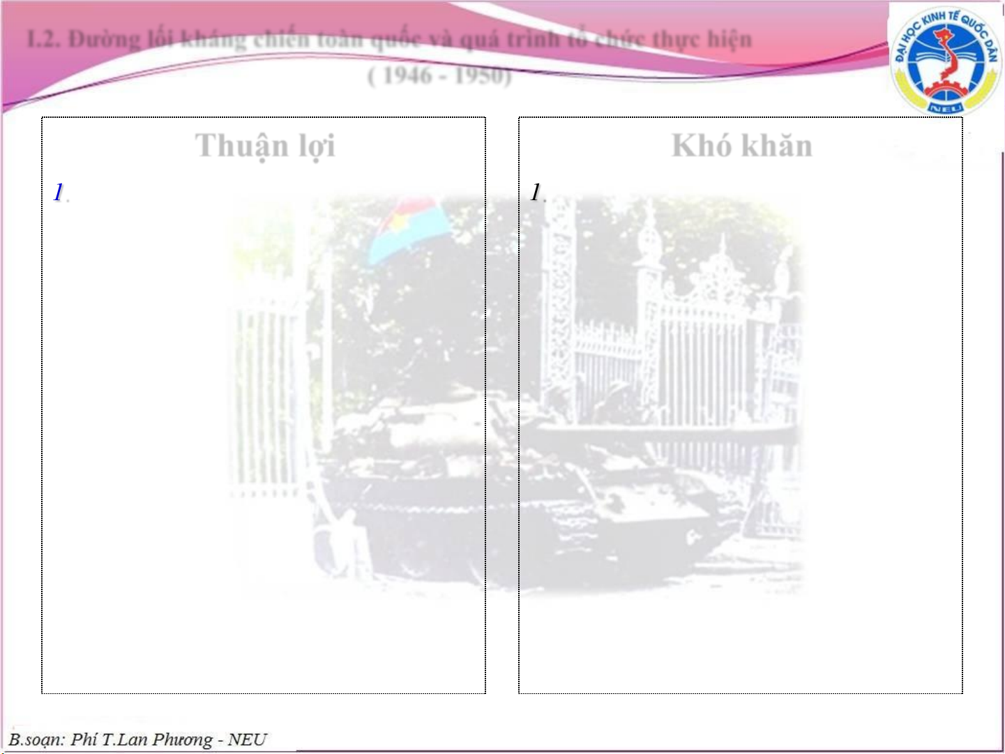 I.2. Đường lối kháng chiến toàn quốc và quá trình tổ chức thực hiện ( 1946 - 1950) Thuận lợi Khó khăn