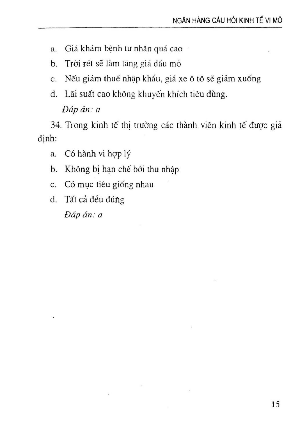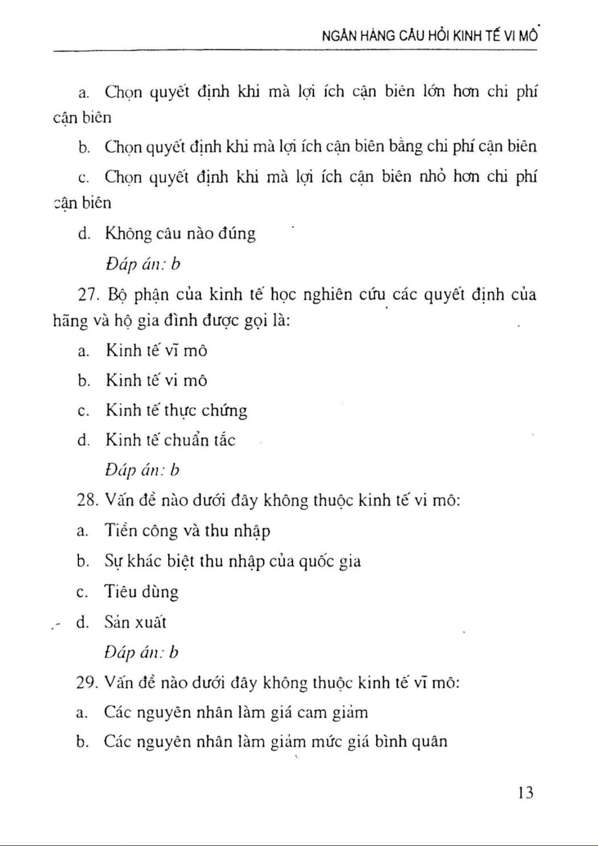 Ngân hàng câu hỏi môn Kinh tế vi mô | Trường Cao đẳng Kinh tế Kế hoạch Đà Nẵng