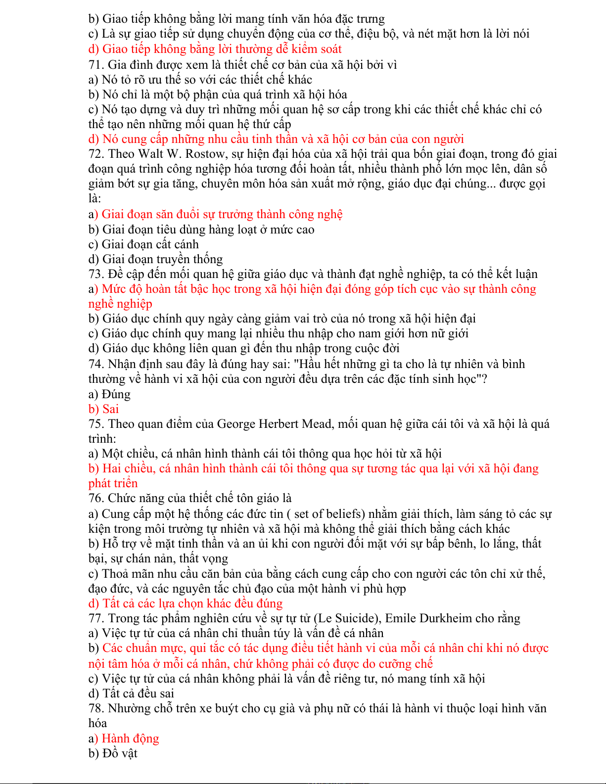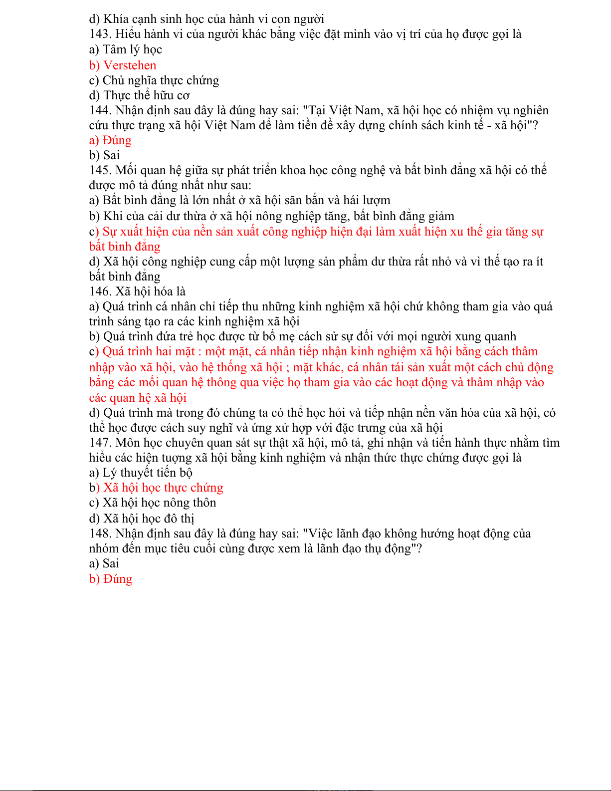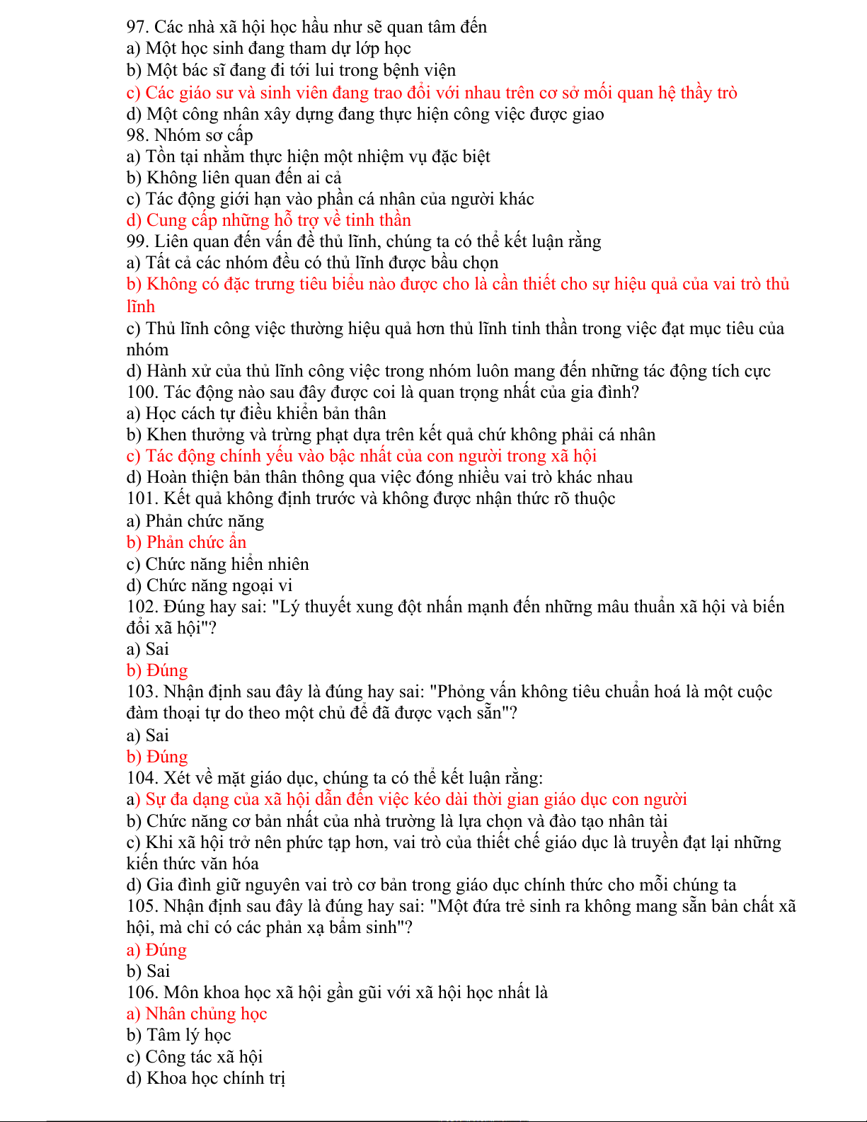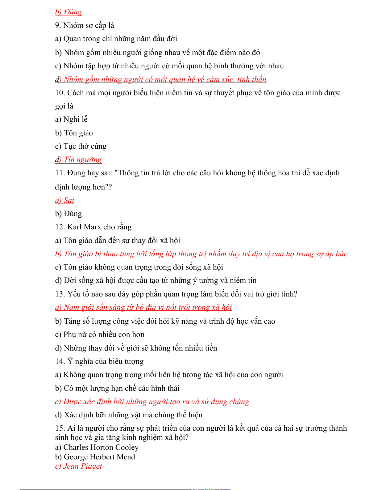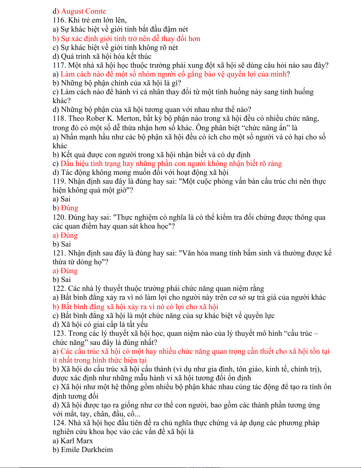 Ngân hàng câu hỏi Môn Xã Hội Học Đại Cương