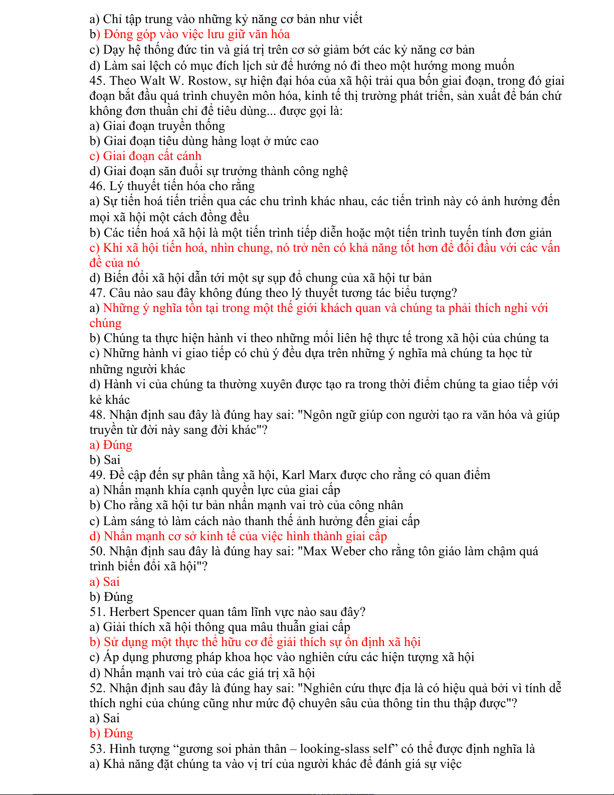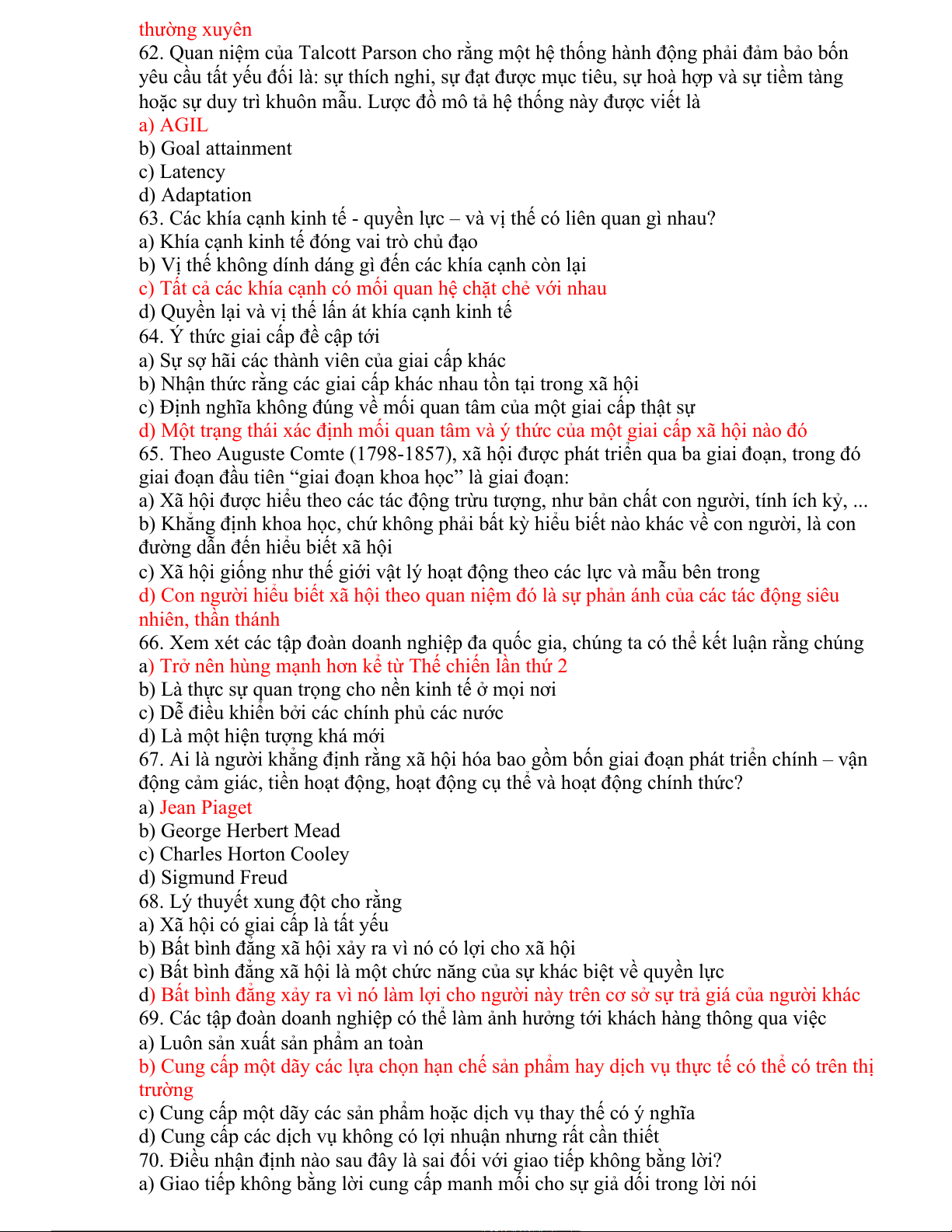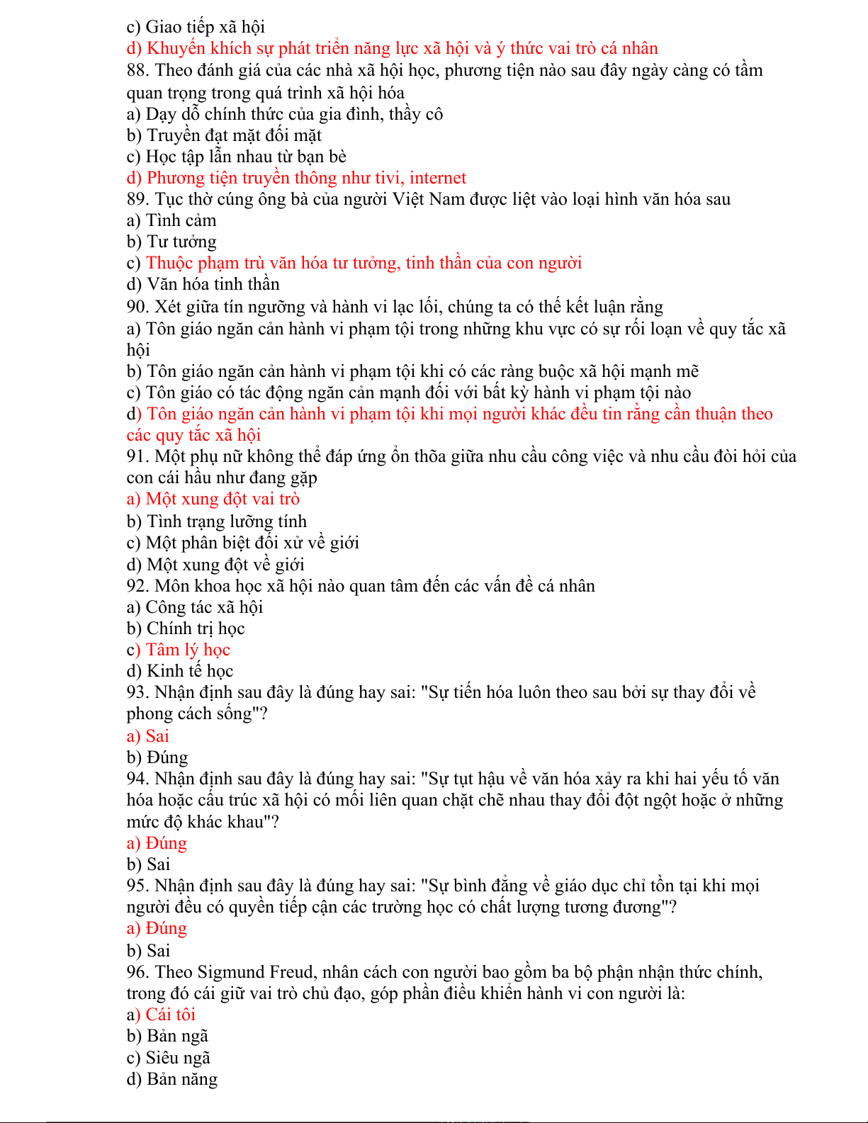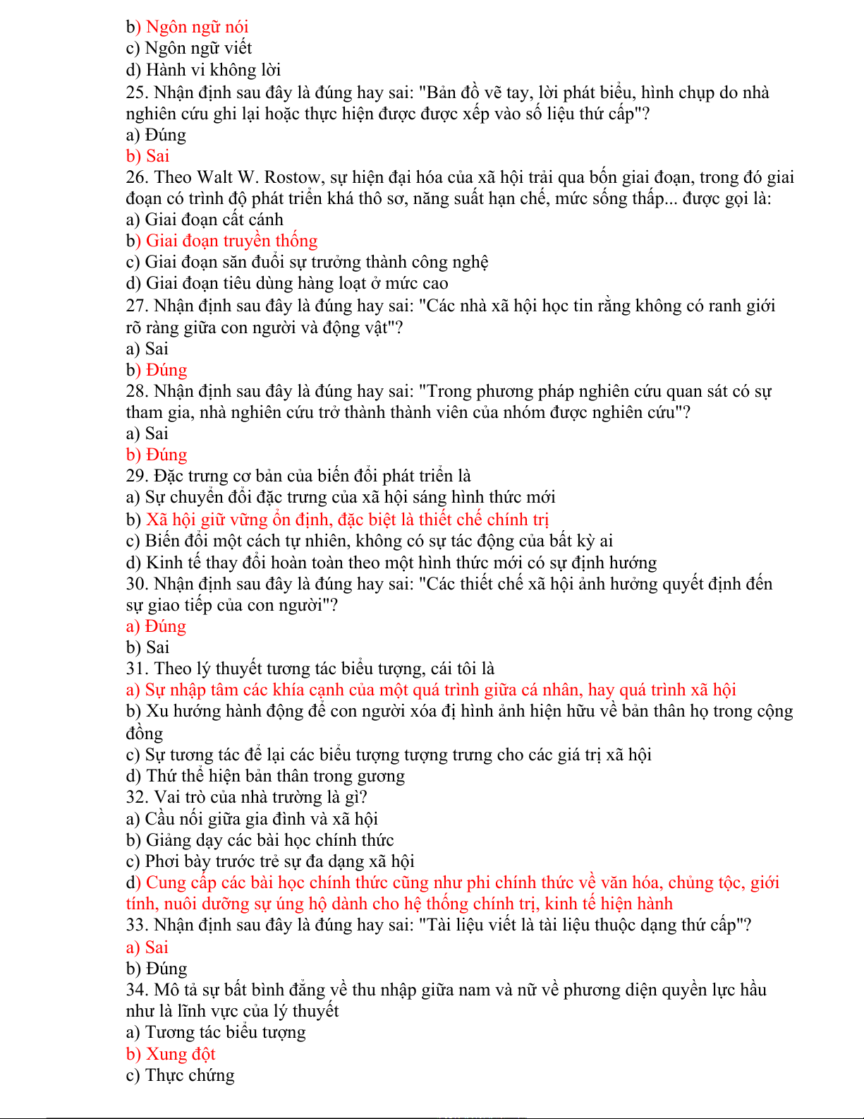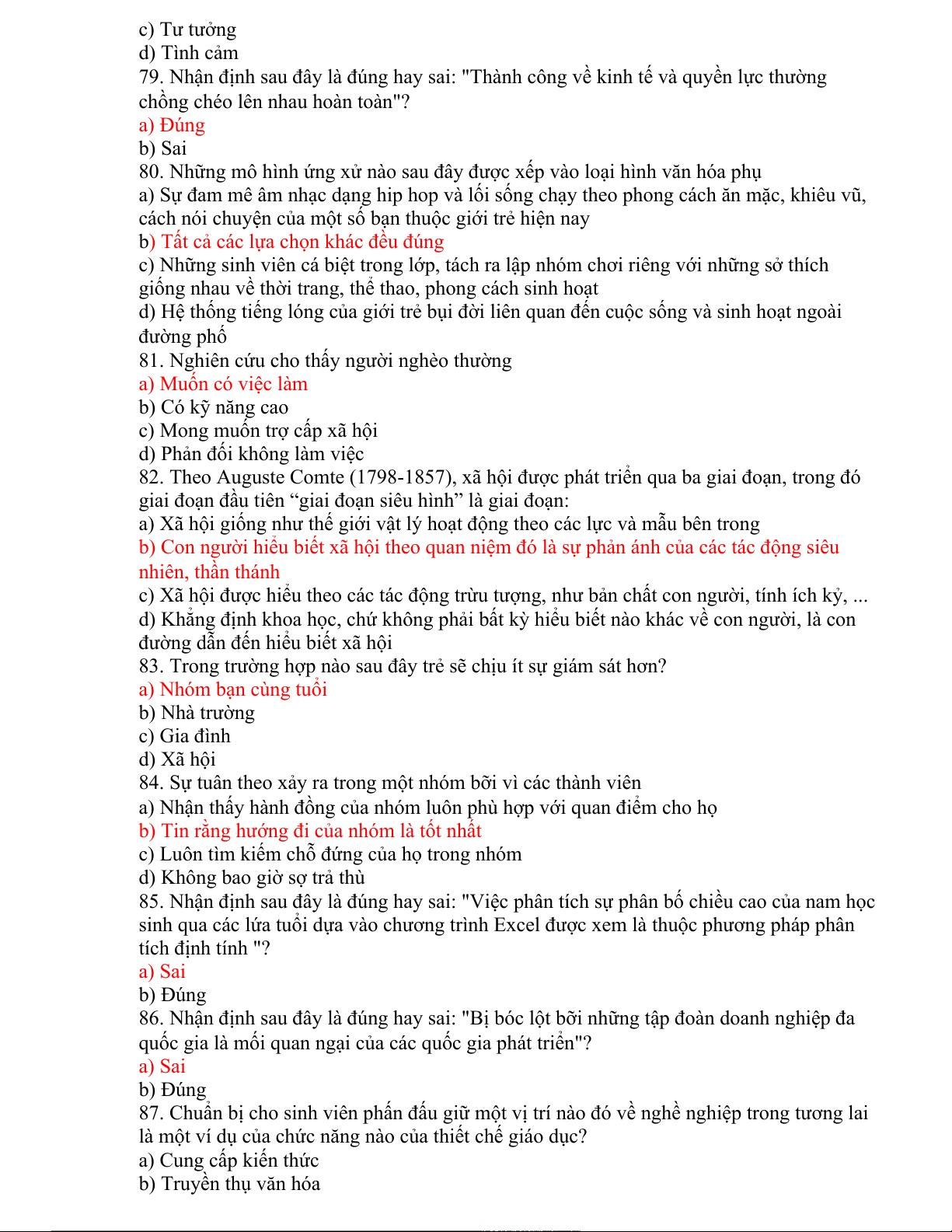Ngân hàng câu hỏi Môn Xã Hội Học Đại Cương