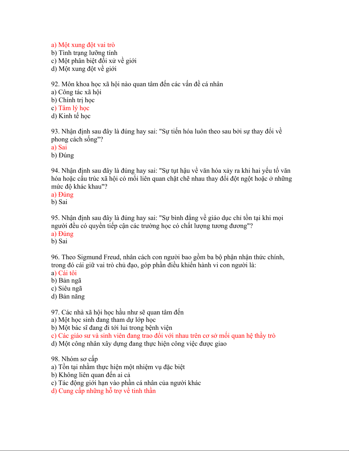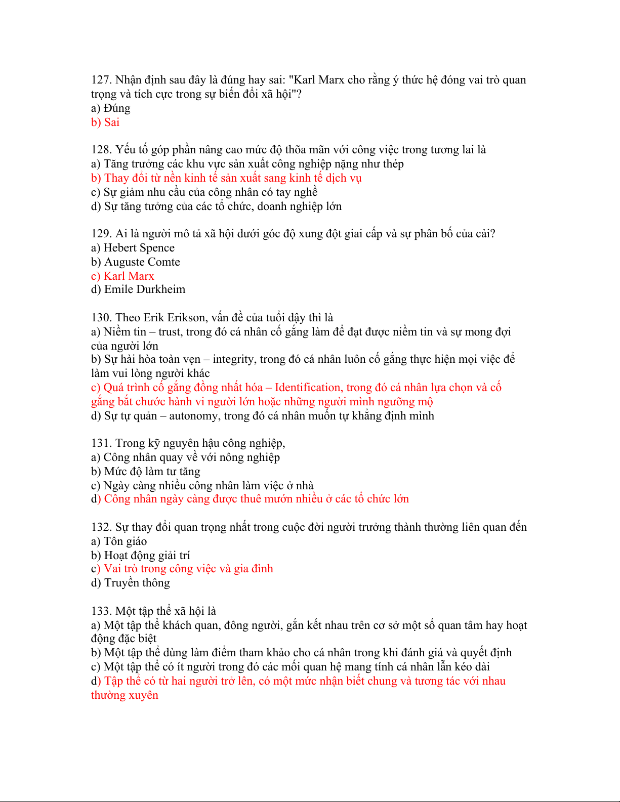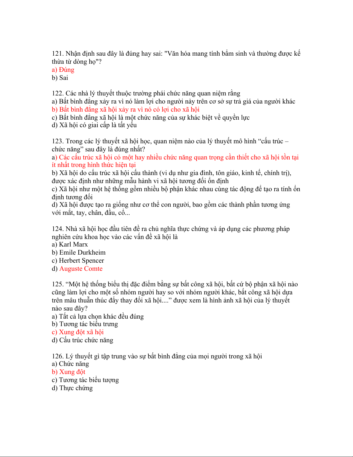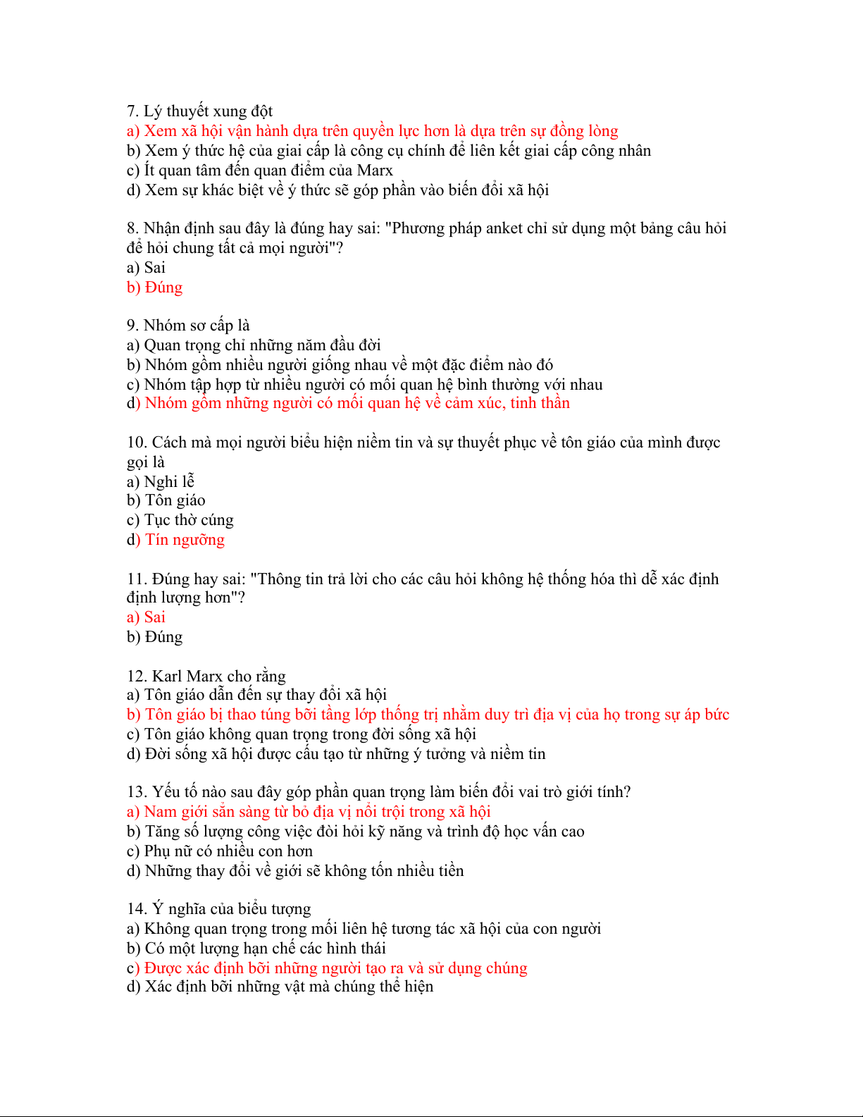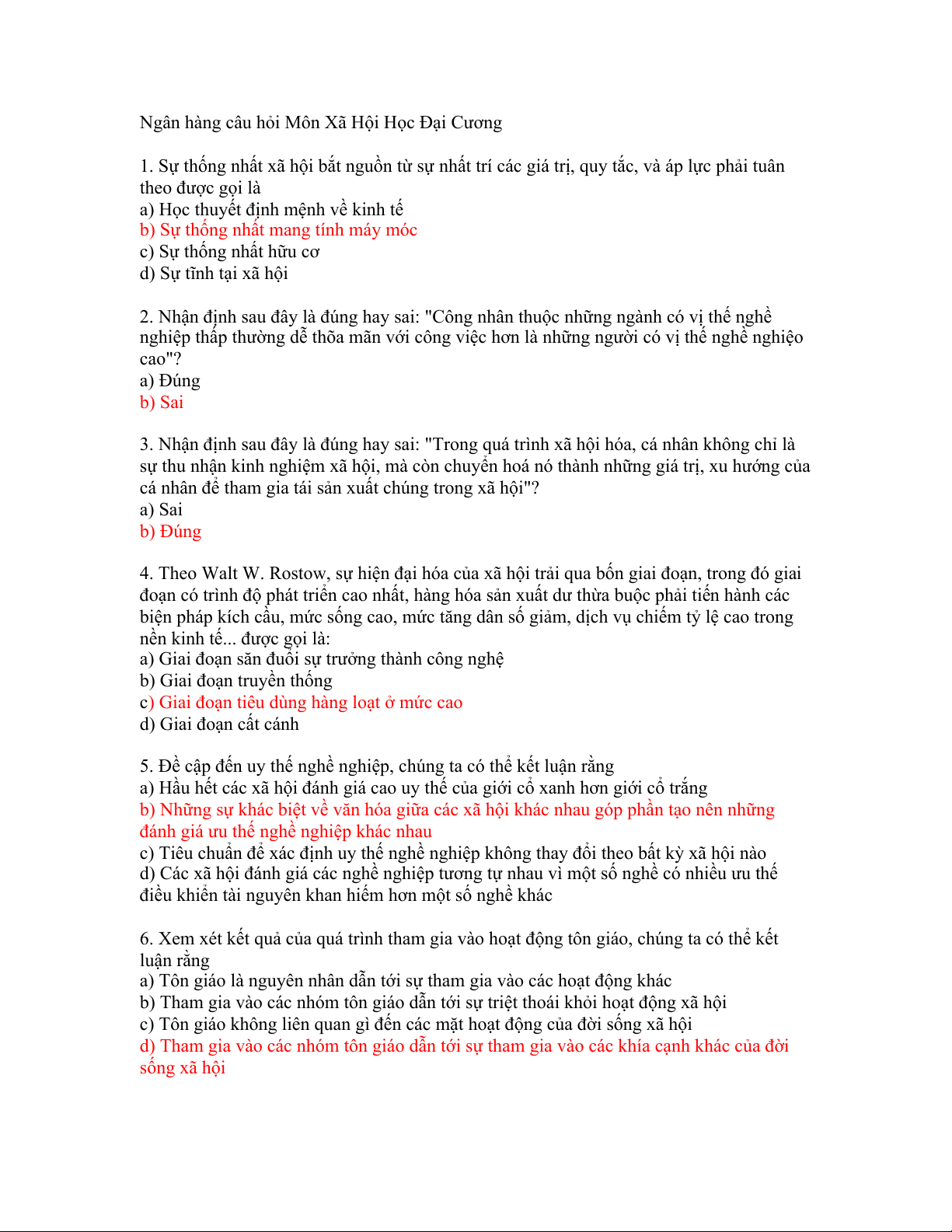 Ngân hàng câu hỏi Môn Xã Hội Học Đại Cương
