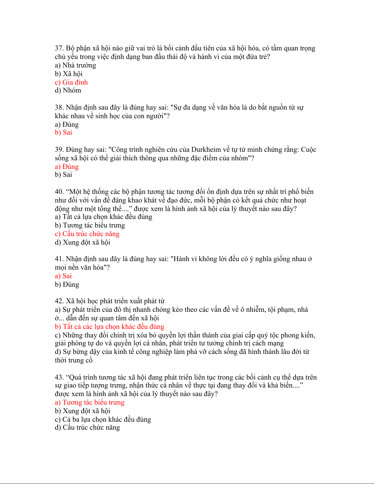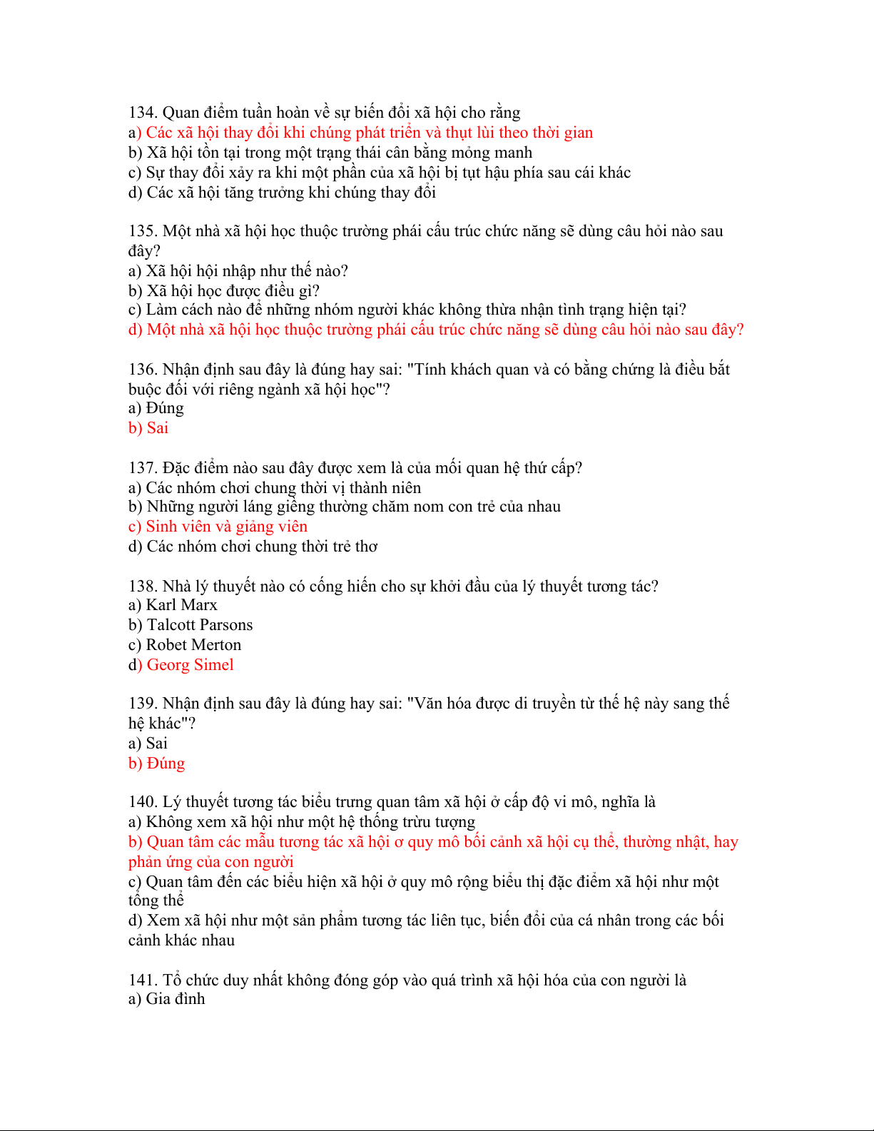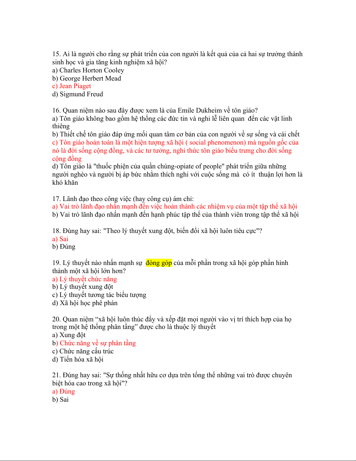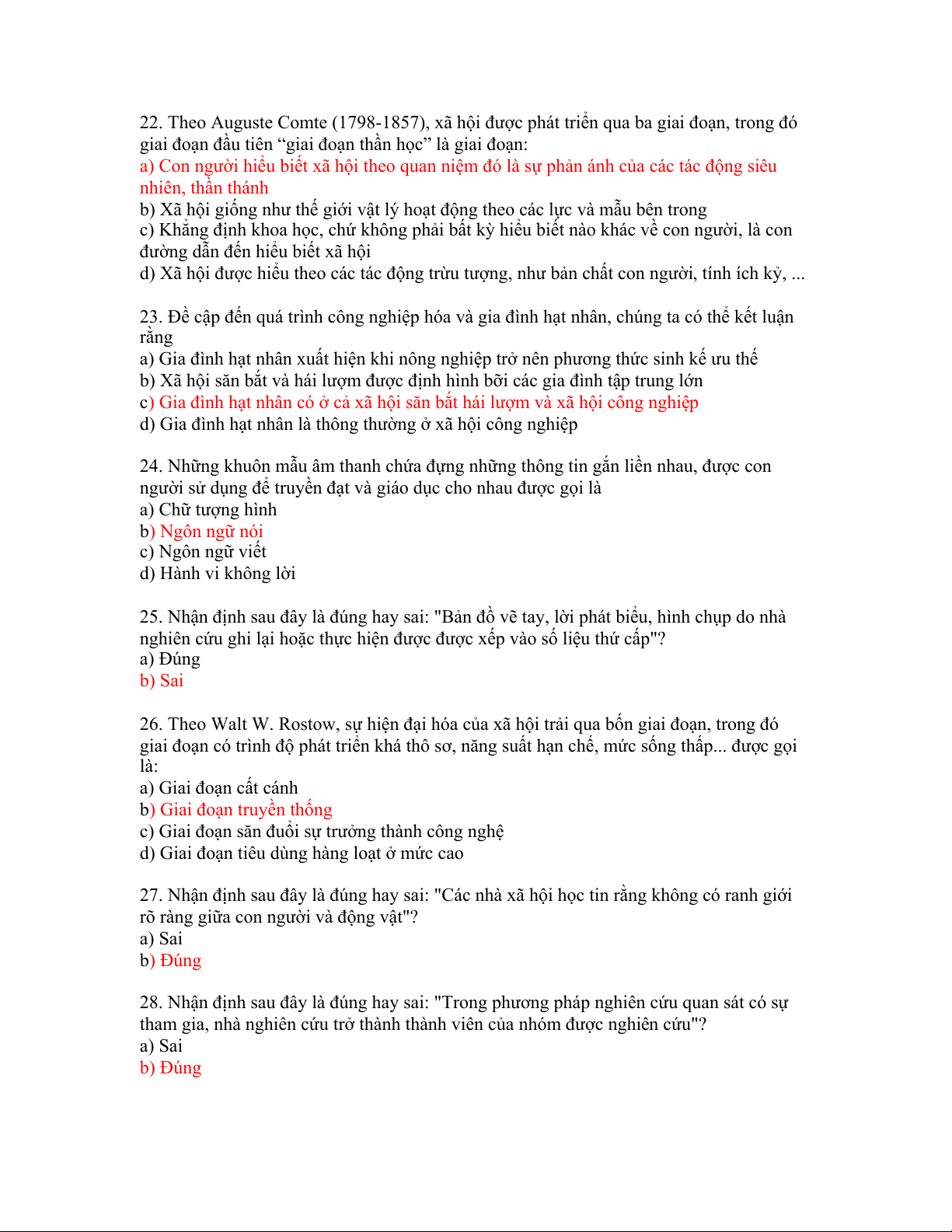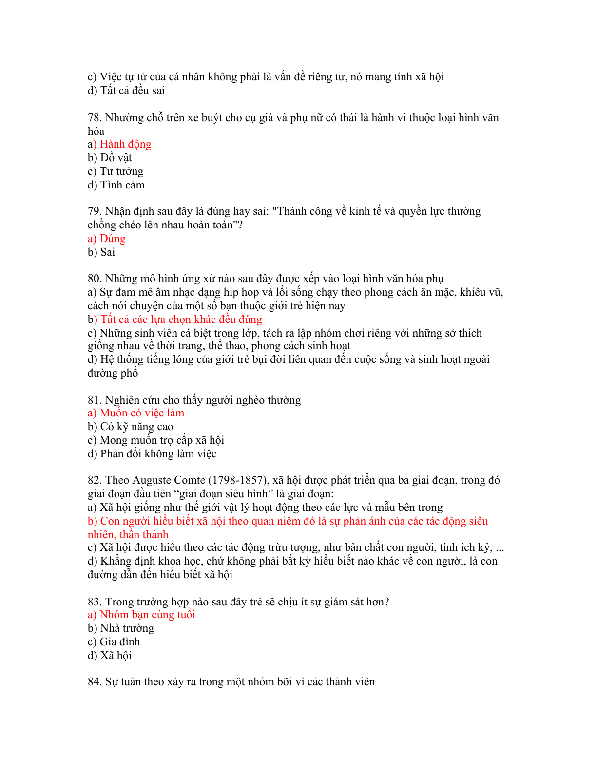 Ngân hàng câu hỏi Môn Xã Hội Học Đại Cương