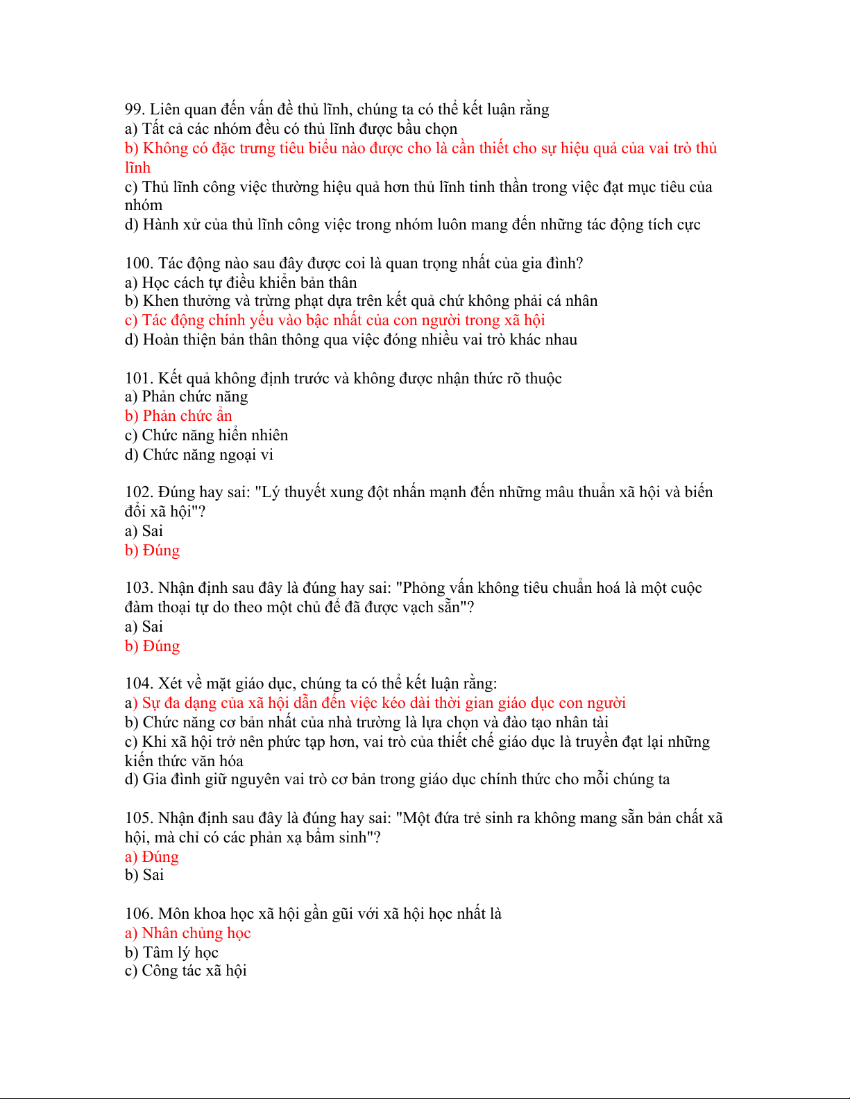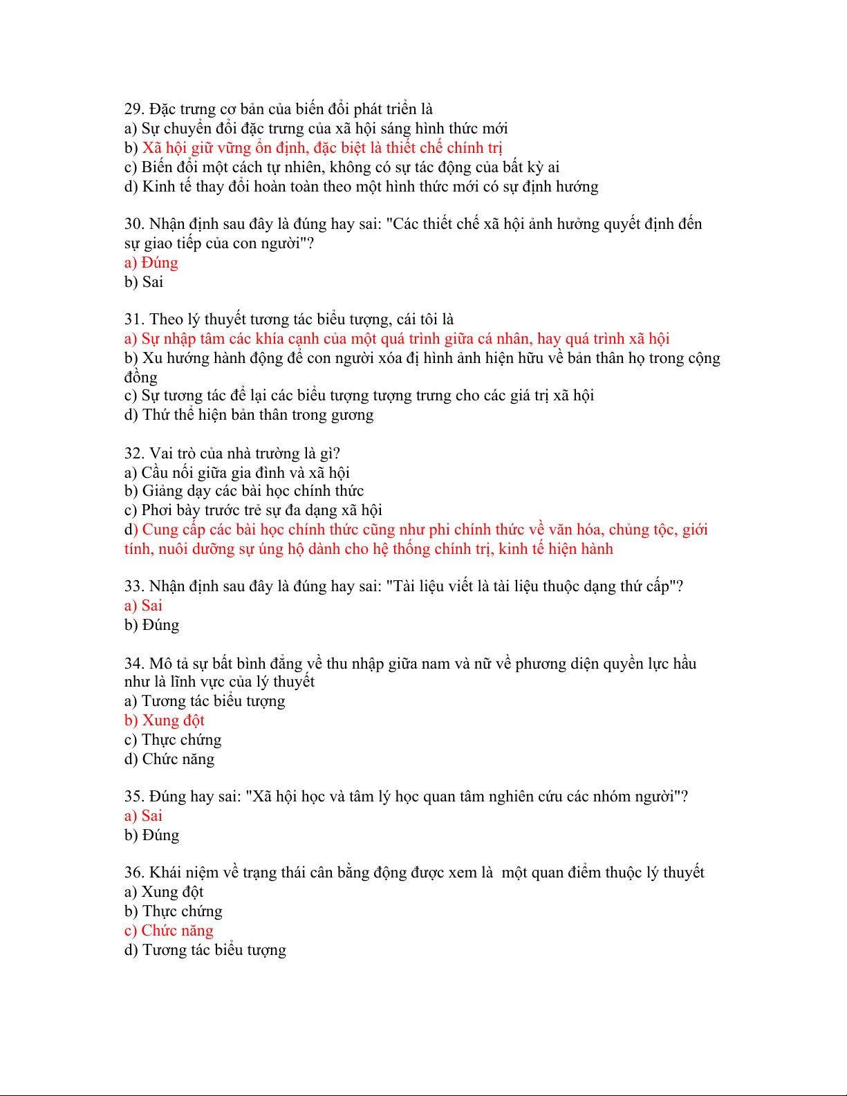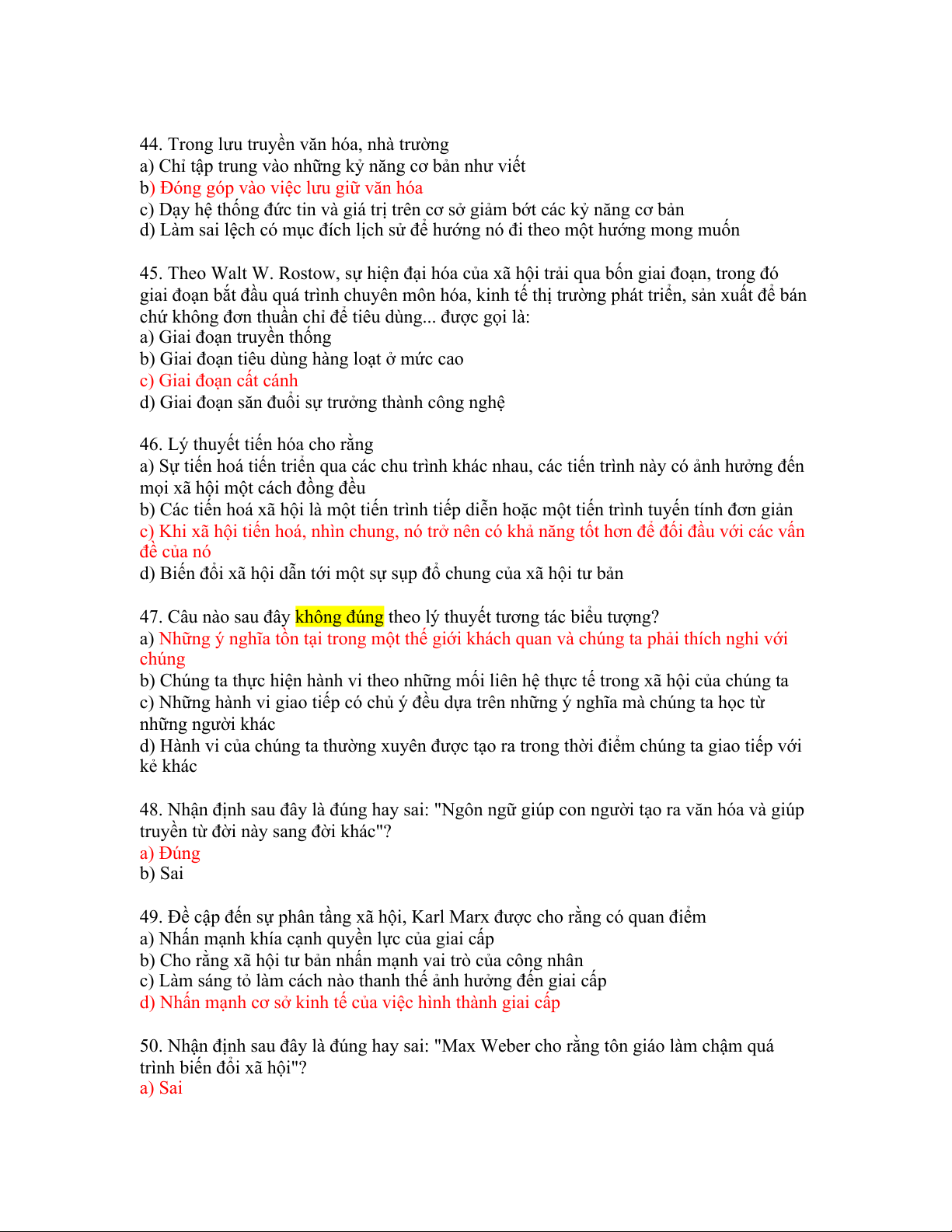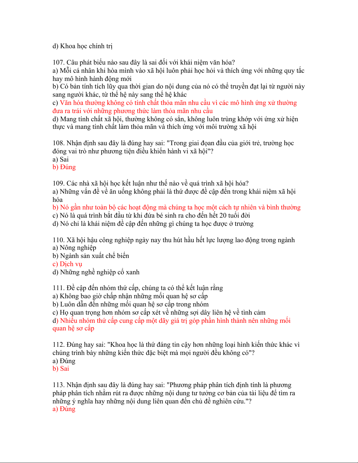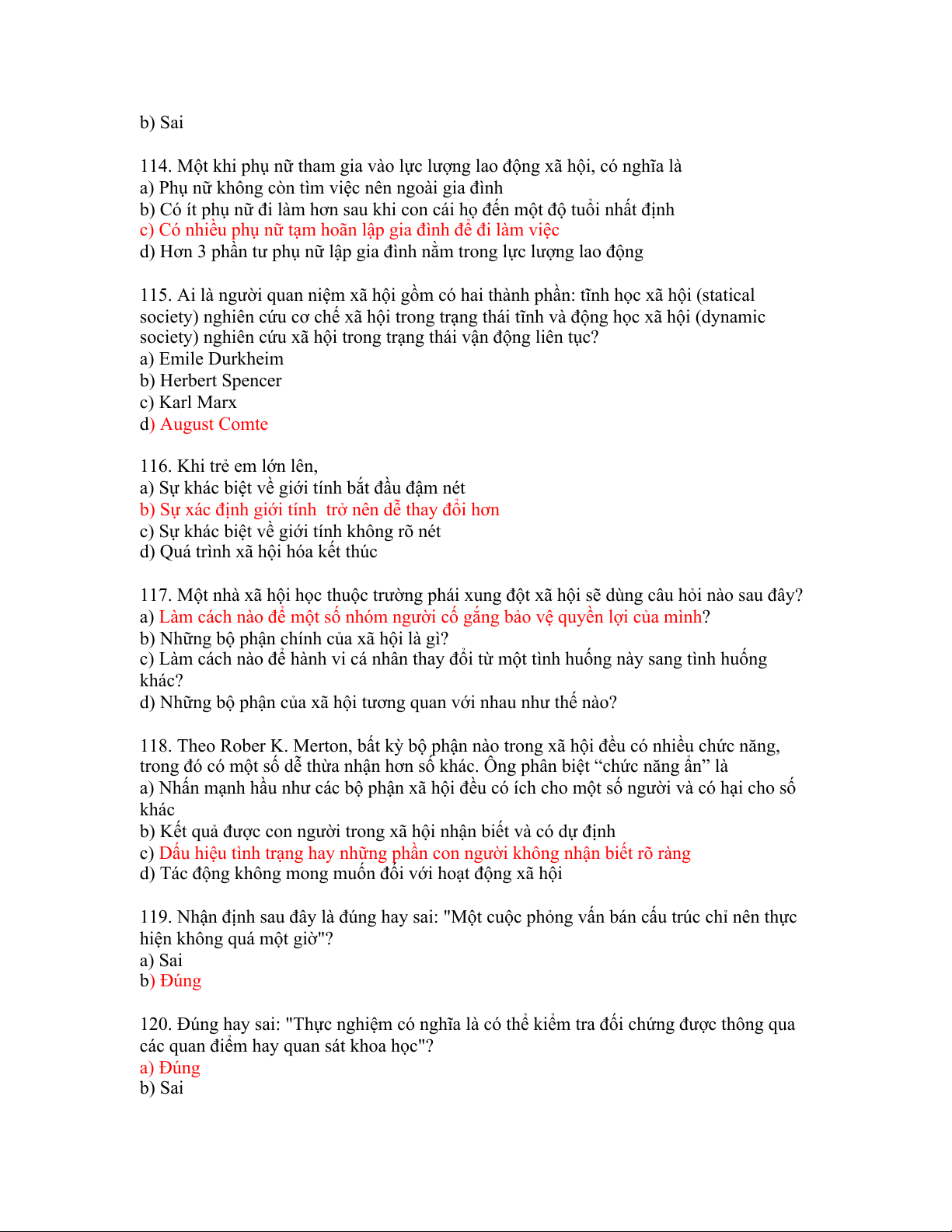 Ngân hàng câu hỏi Môn Xã Hội Học Đại Cương