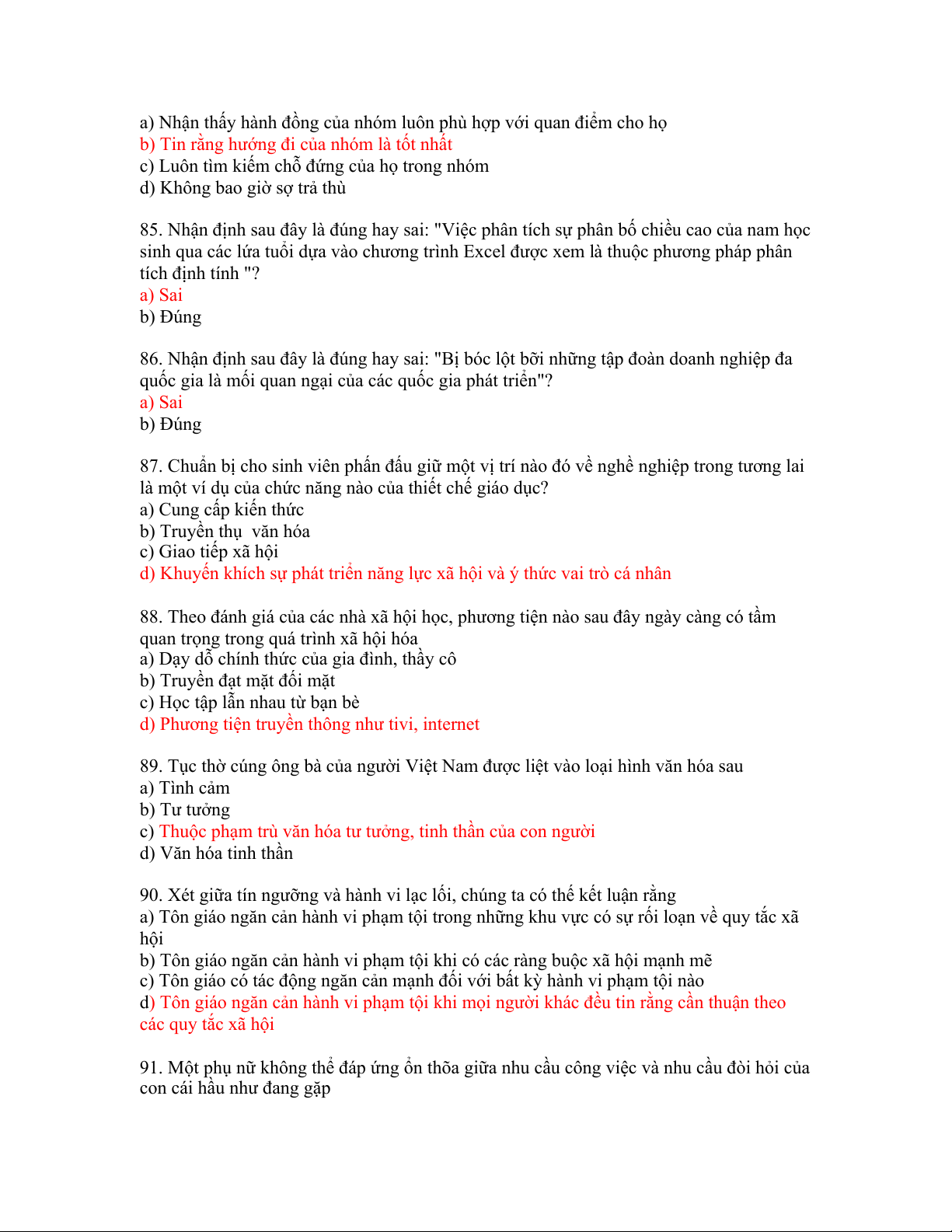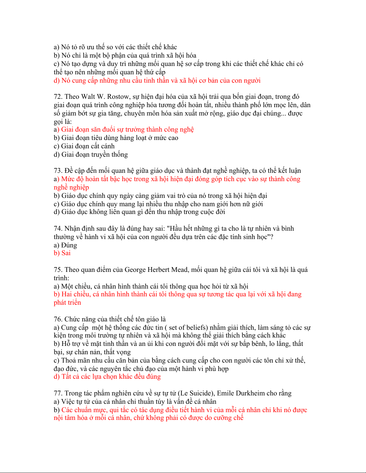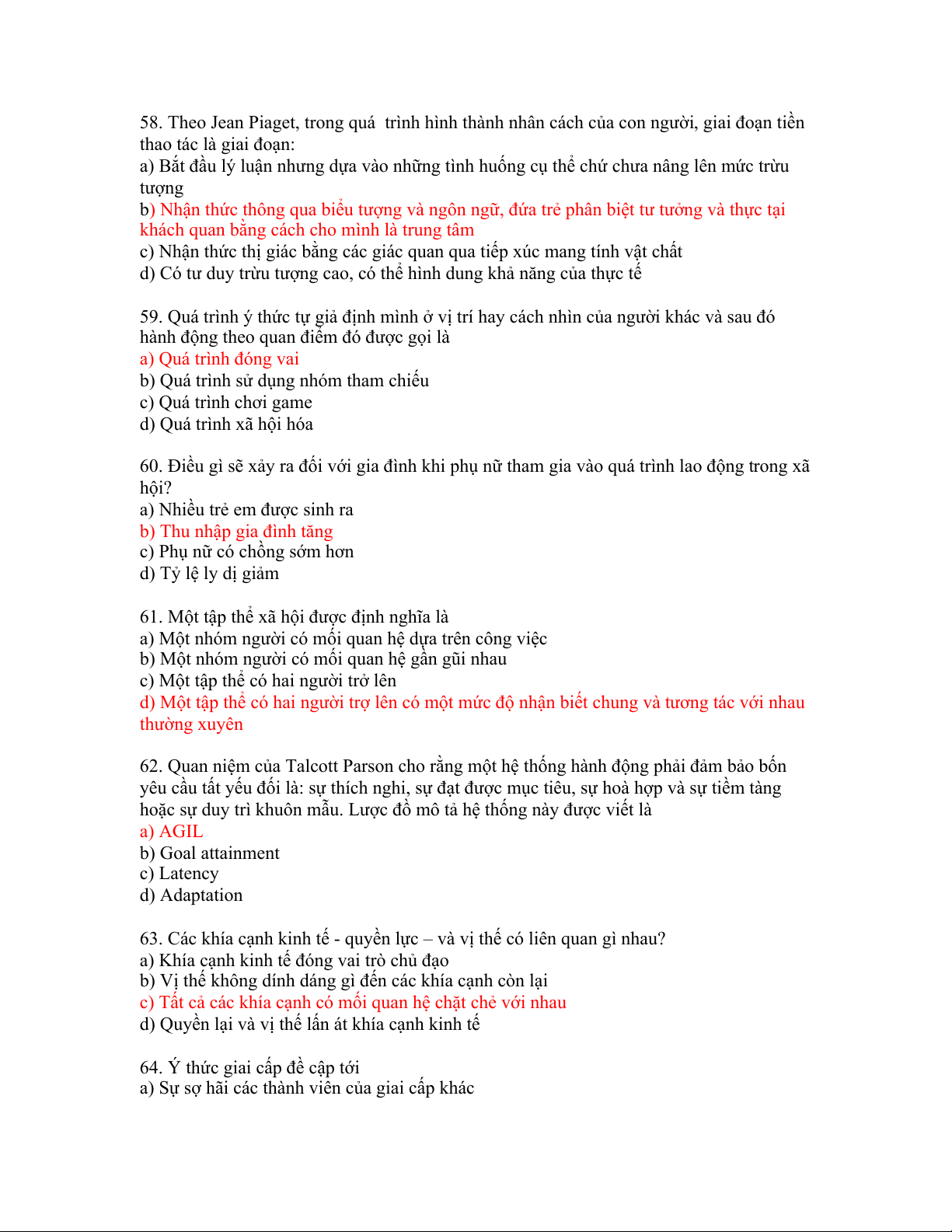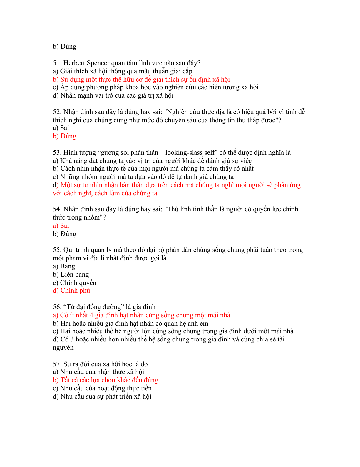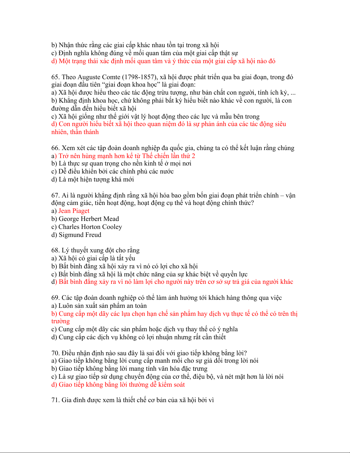Ngân hàng câu hỏi Môn Xã Hội Học Đại Cương