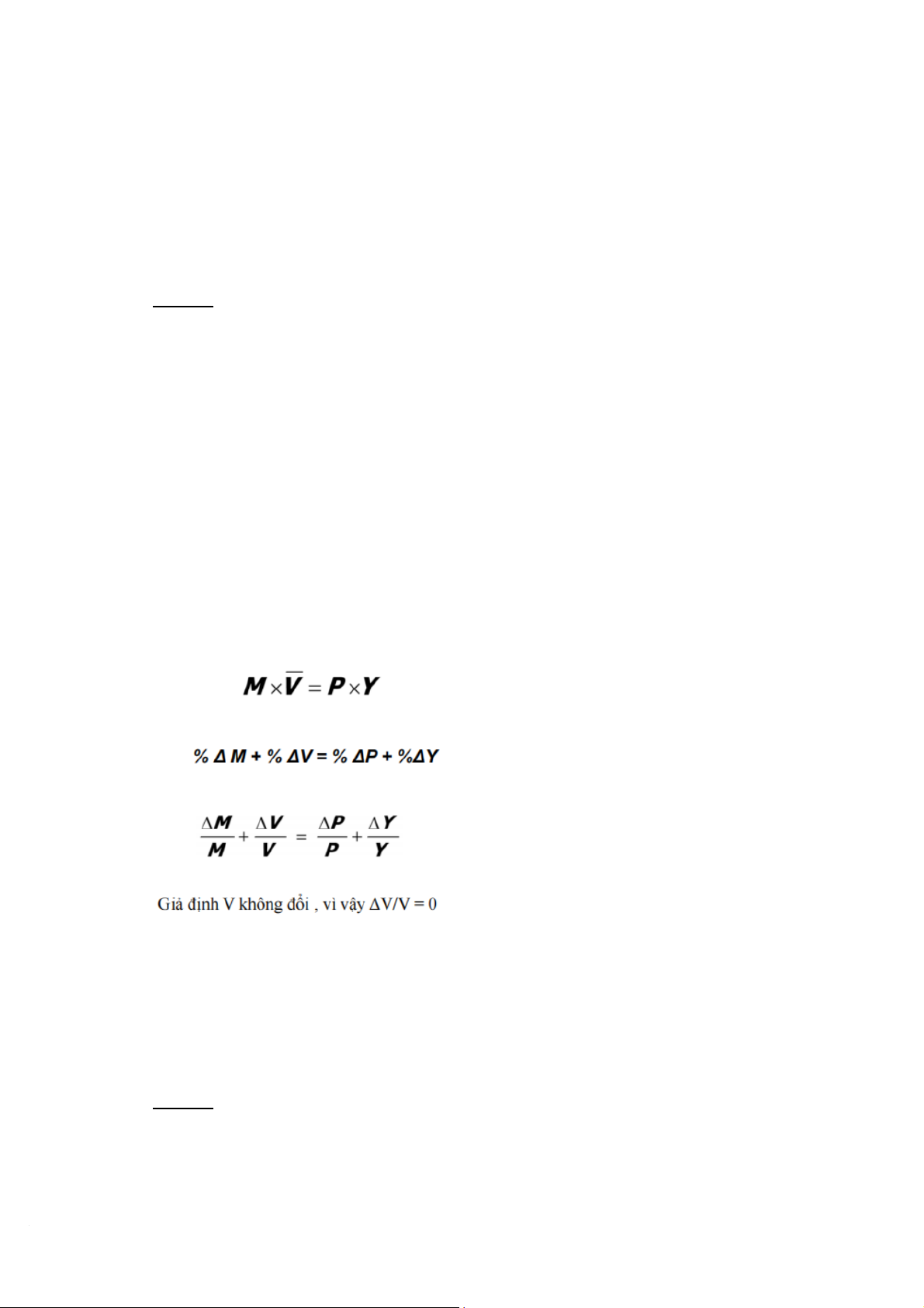 Trong đó: M là tổng lượng cung tiền V là vòng quay của tiền P là mức giá chung