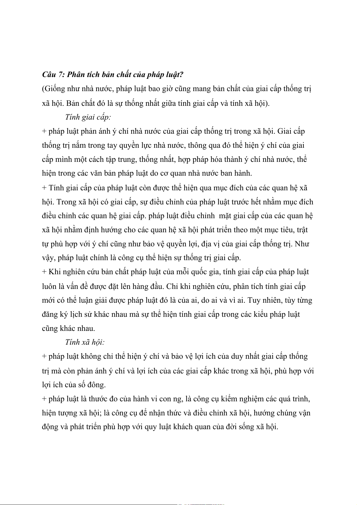 Câu 7: Phân tích bản chất của pháp luật?