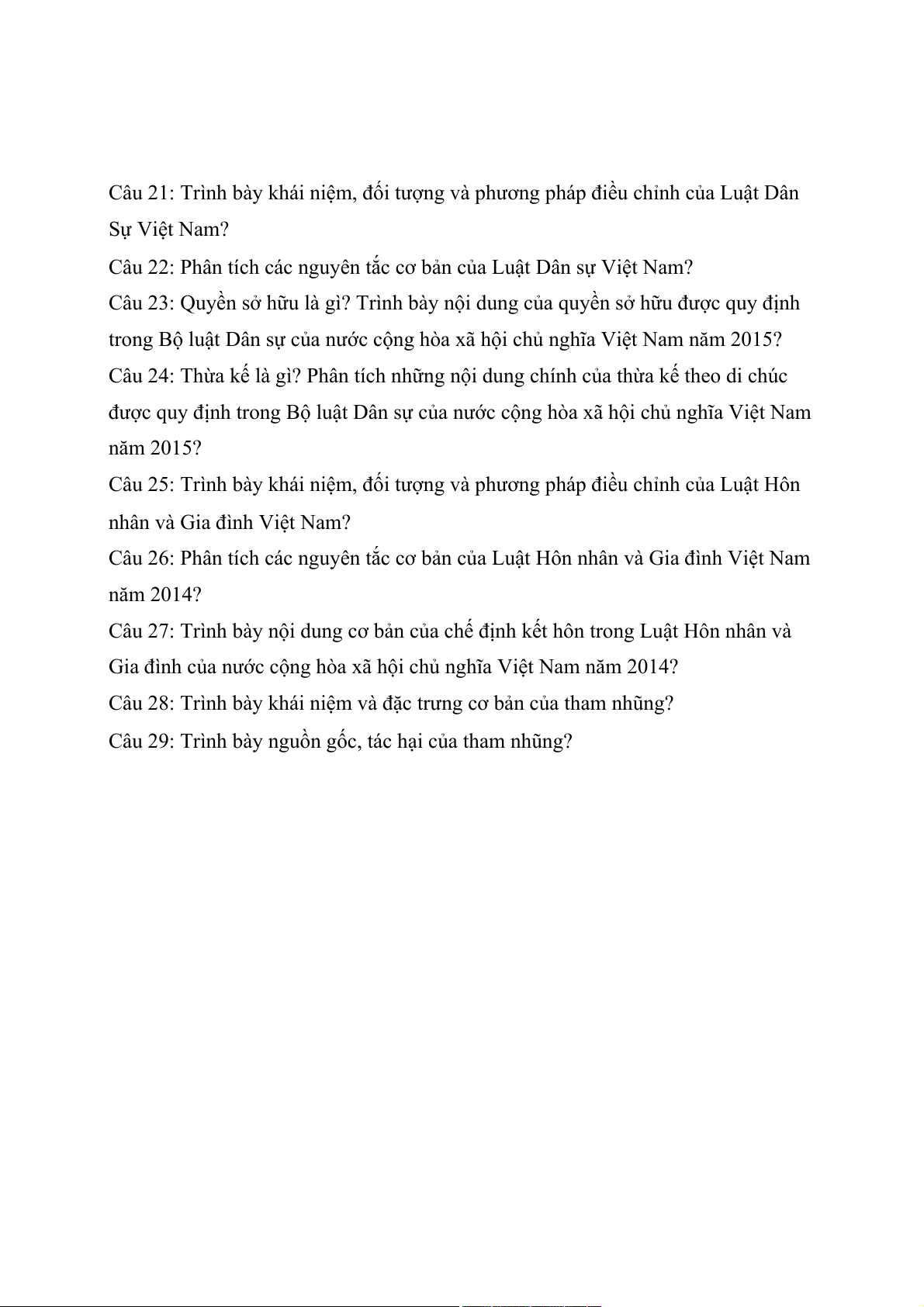 Câu 21: Trình bày khái niệm, đối tượng và phương pháp điều chỉnh của Luật Dân Sự Việt Nam?
