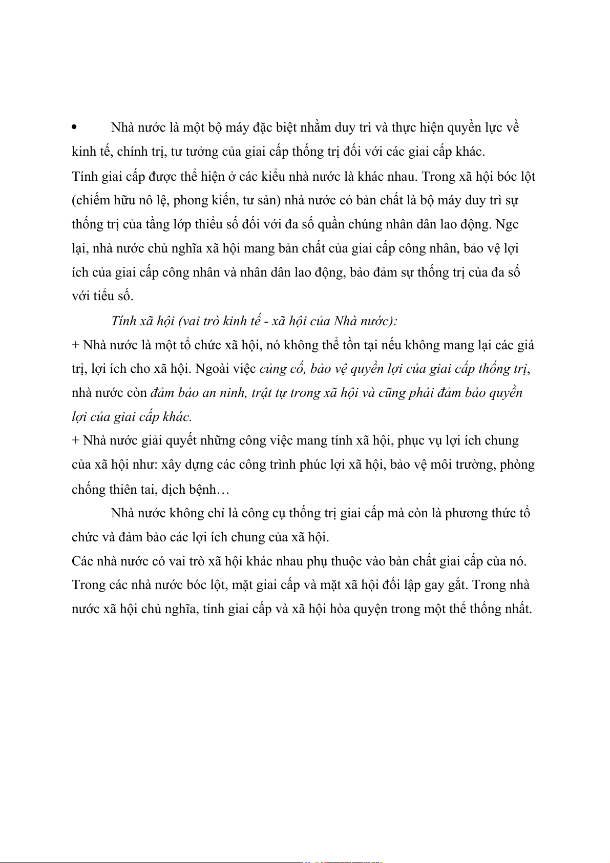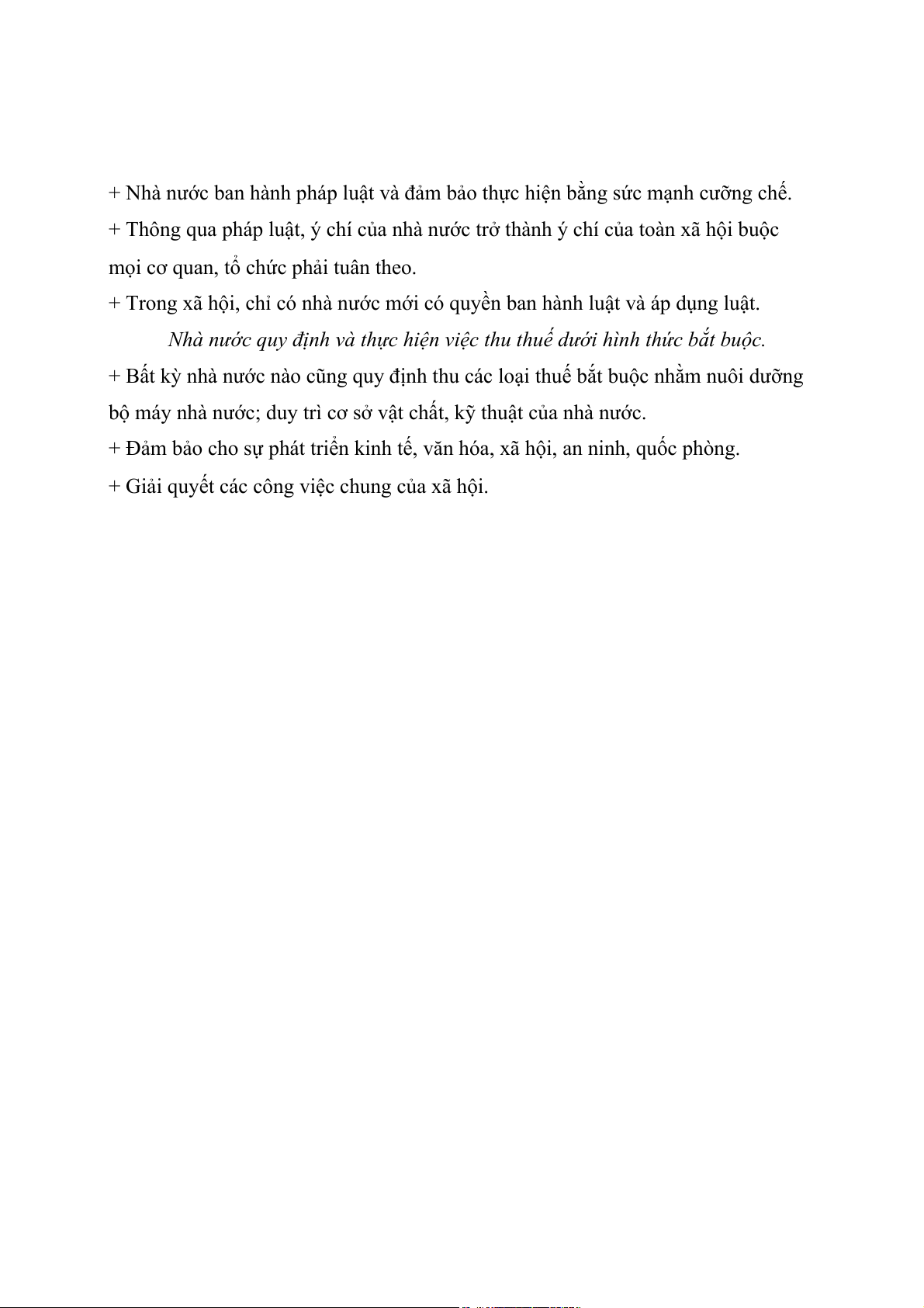 + Nhà nước giải quyết những công việc mang tính xã hội, phục vụ lợi ích chung