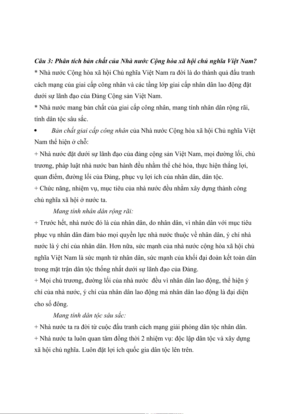 Câu 3: Phân tích bản chất của Nhà nước Cộng hòa xã hội chủ nghĩa Việt Nam?