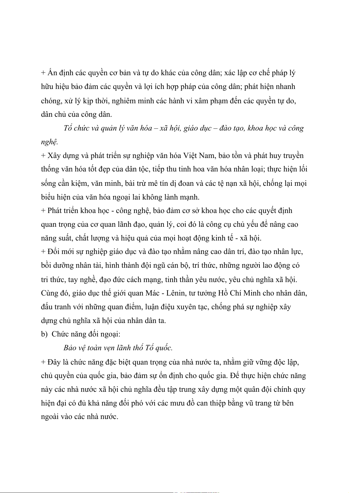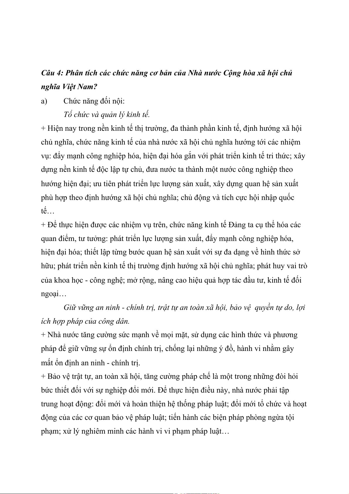 Câu 4: Phân tích cấc chức năng cơ bản của Nhà nước Cộng hòa xa hội chủ nghĩa Việt Nam?