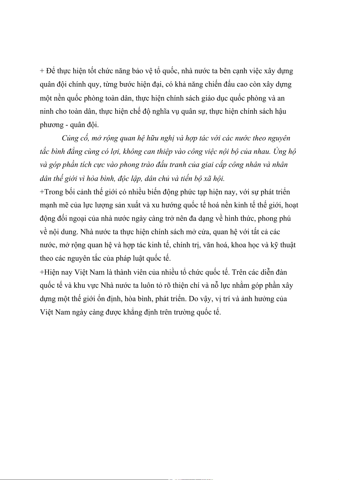 + Nhà nước tự quyết định các chính sách đối nội và đối ngoại, không phụ thuộc