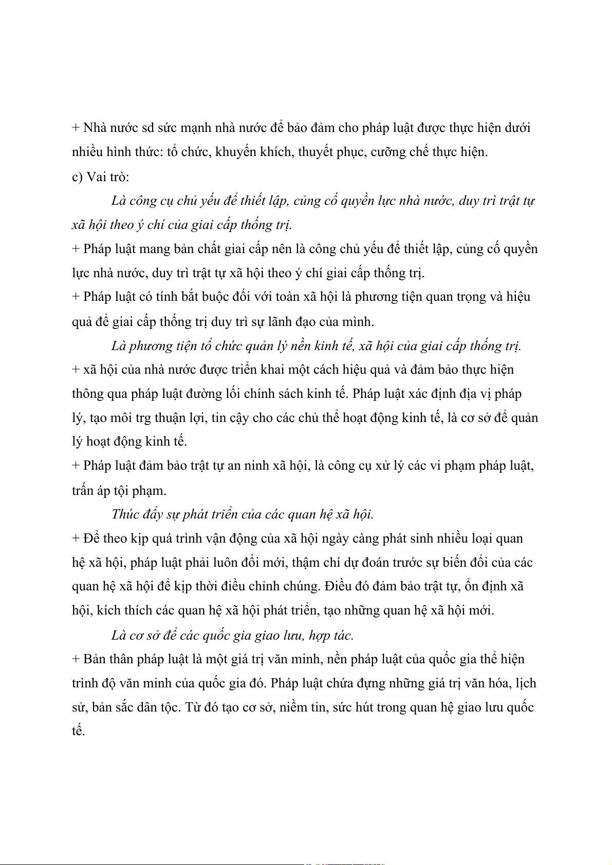 + pháp luật phản ánh ý chí nhà nước của giai cấp thống trị trong xã hội. Giai cấp