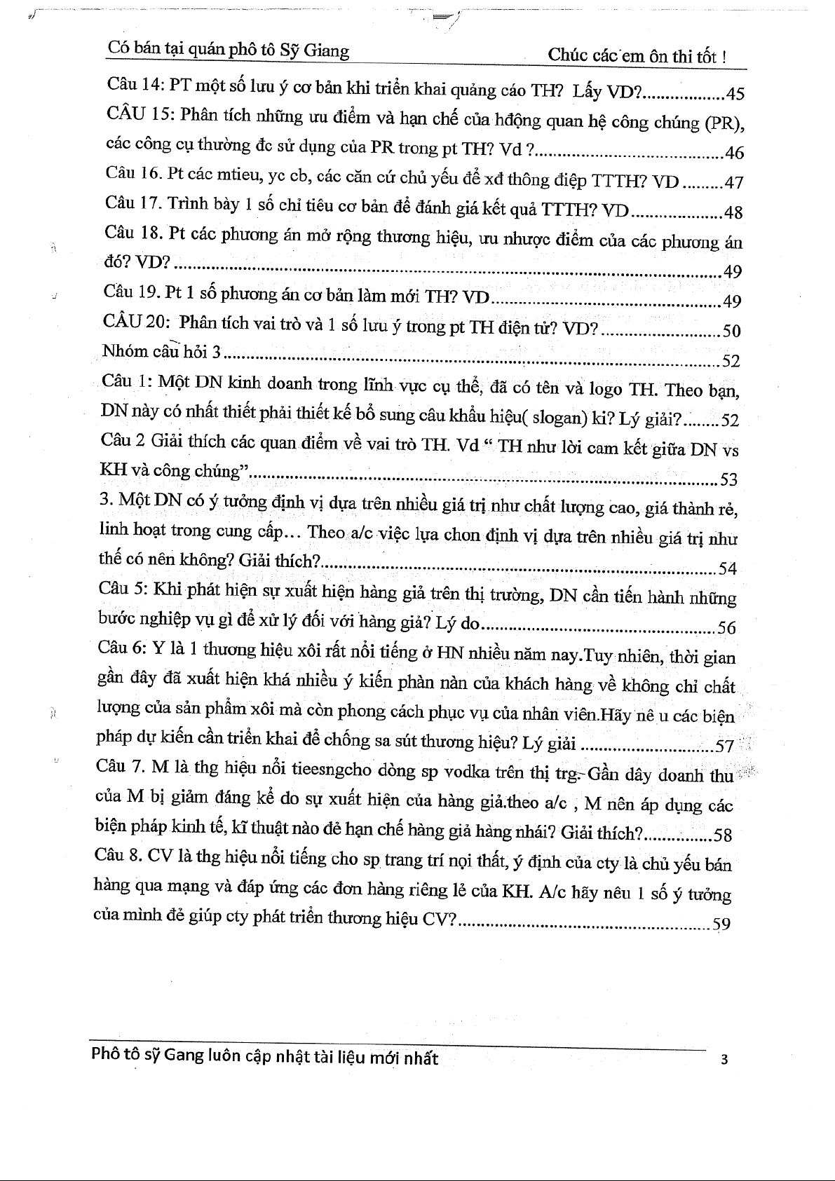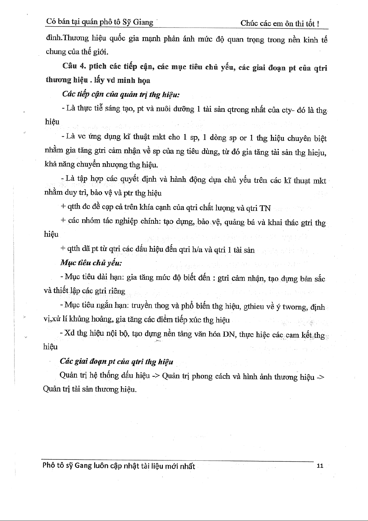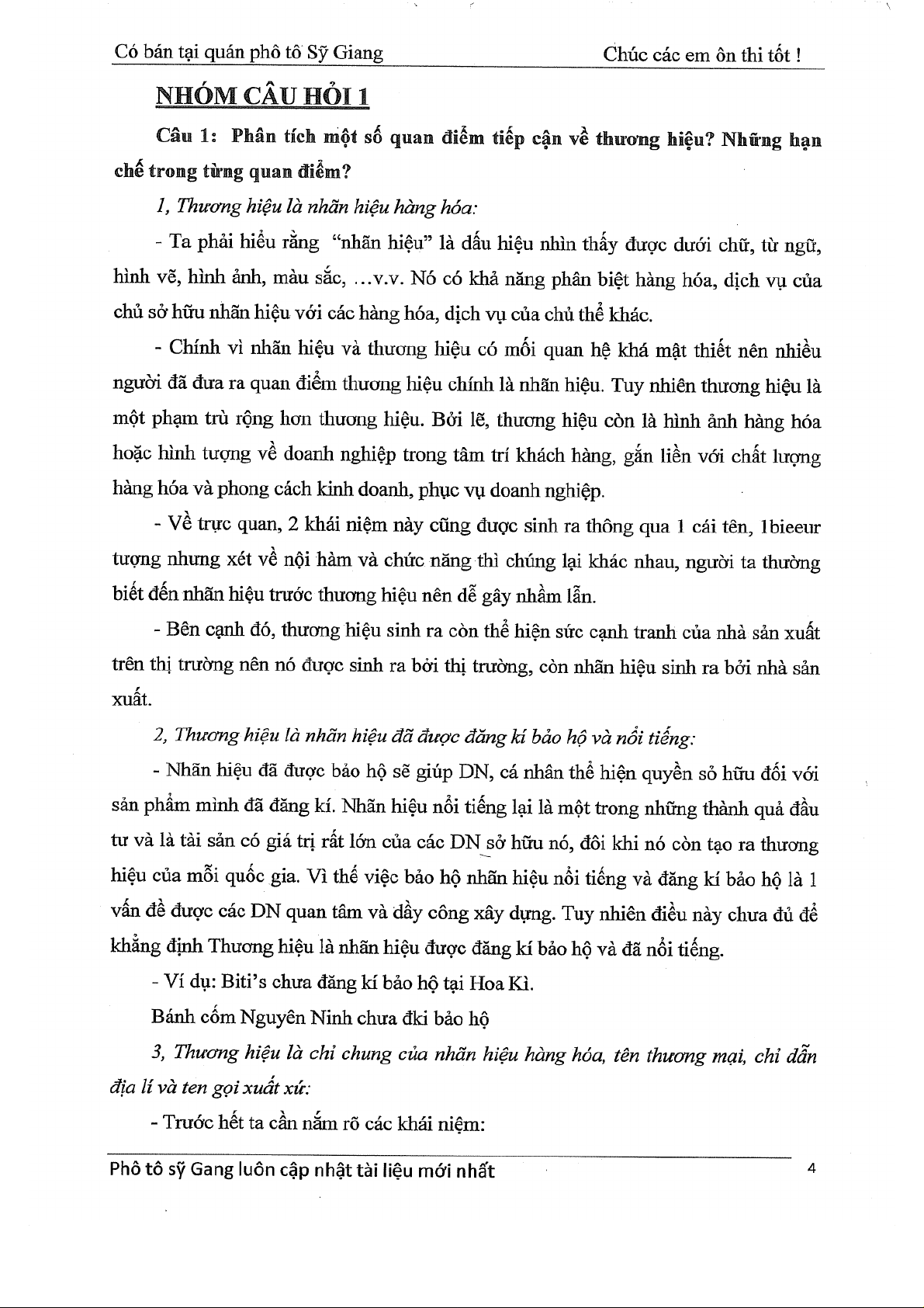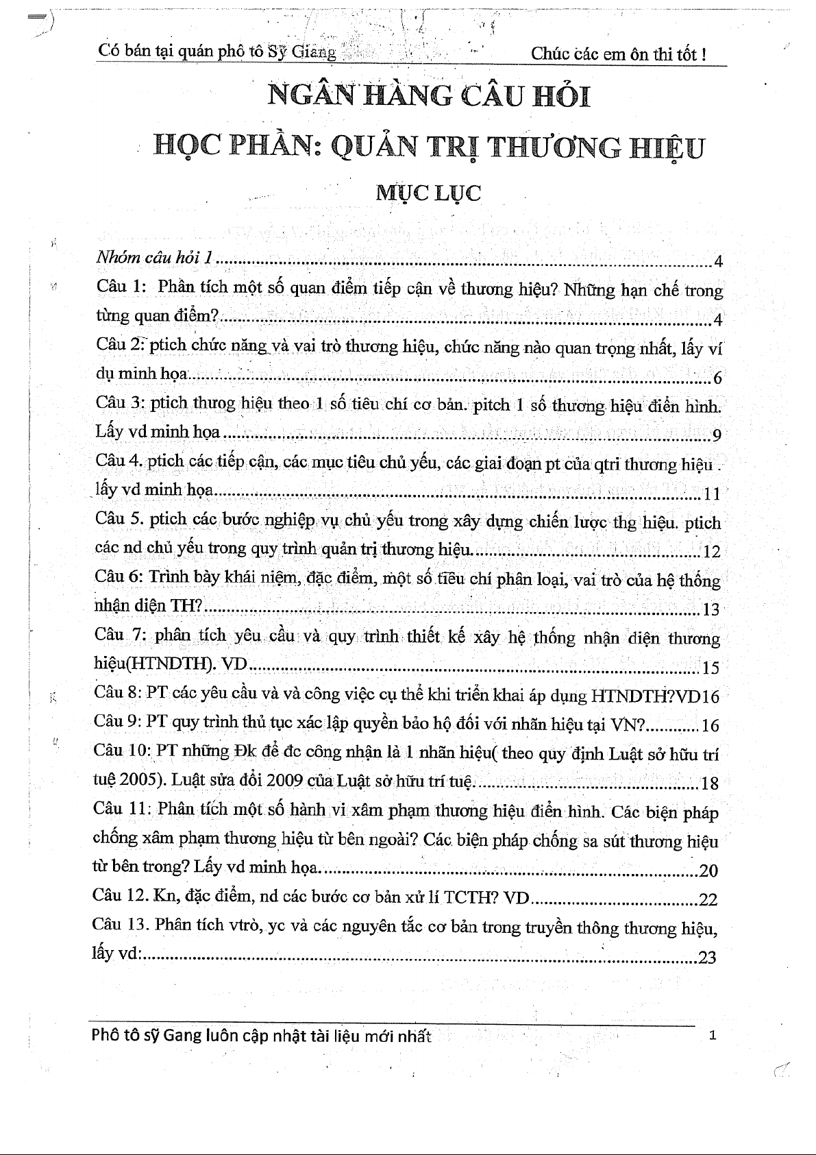 Ngân hàng câu hỏi quản trị thương hiệu | Trường Đại học Thương Mại