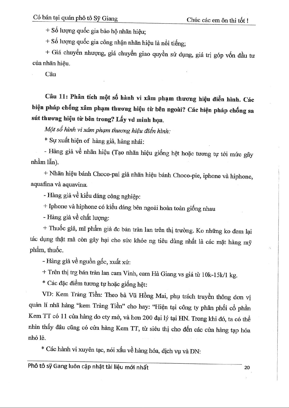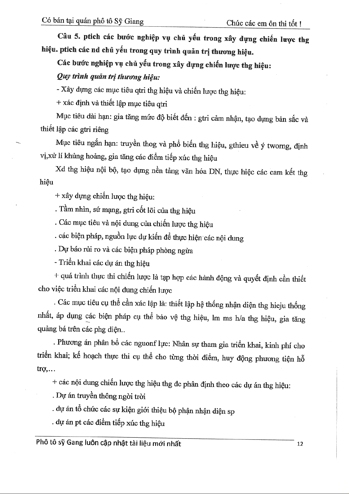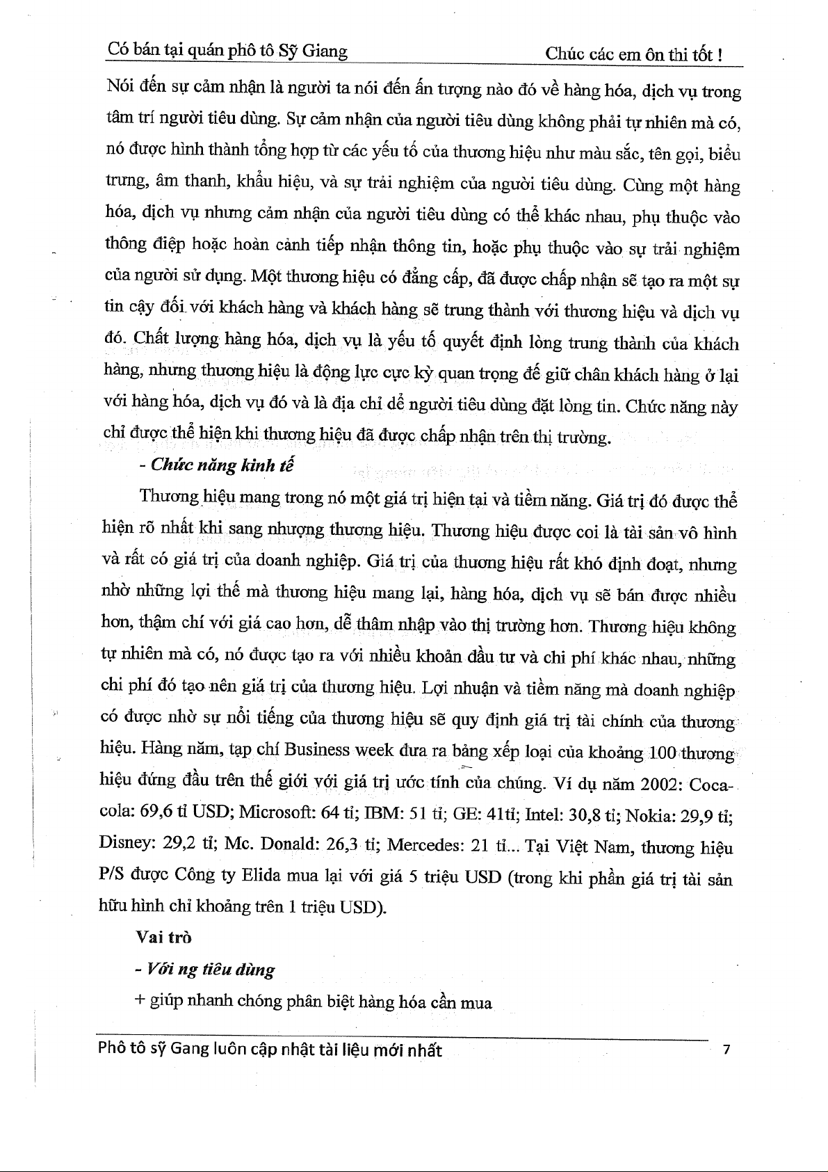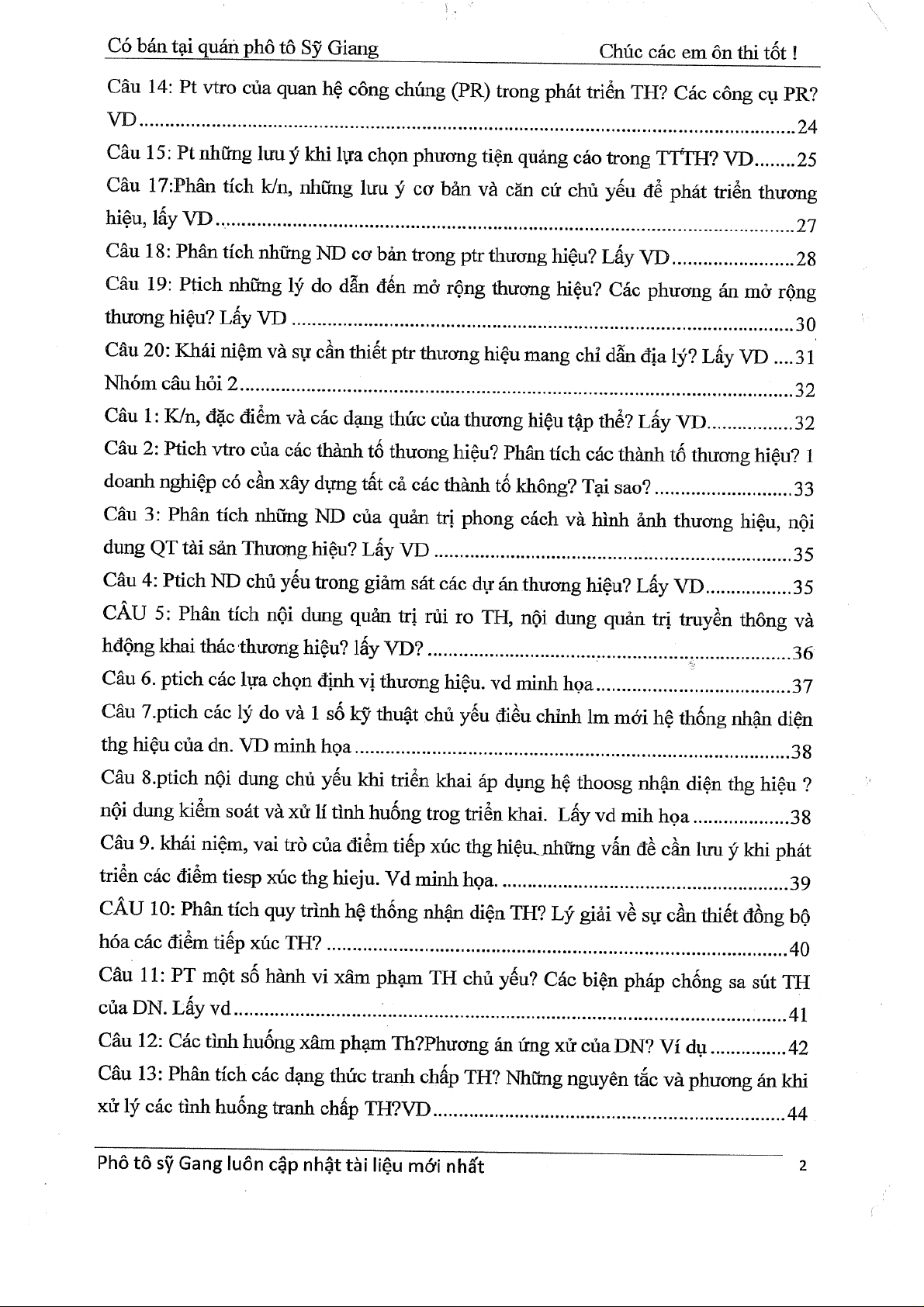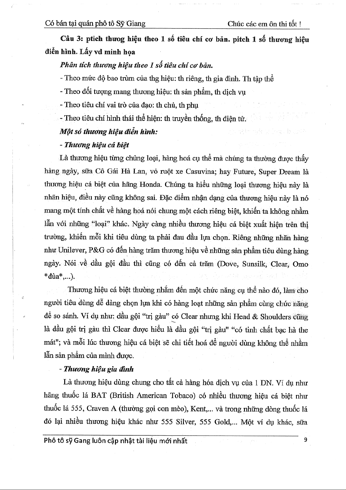 Ngân hàng câu hỏi quản trị thương hiệu | Trường Đại học Thương Mại
