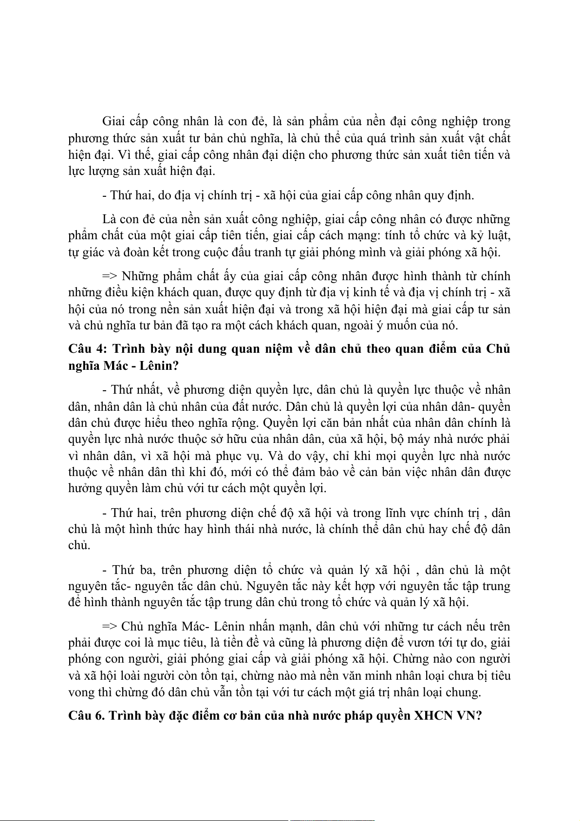 Câu 4: Trình bày nội dung quan niệm về dân chủ theo quan điểm của Chủ nghĩa Mác - Lênin?