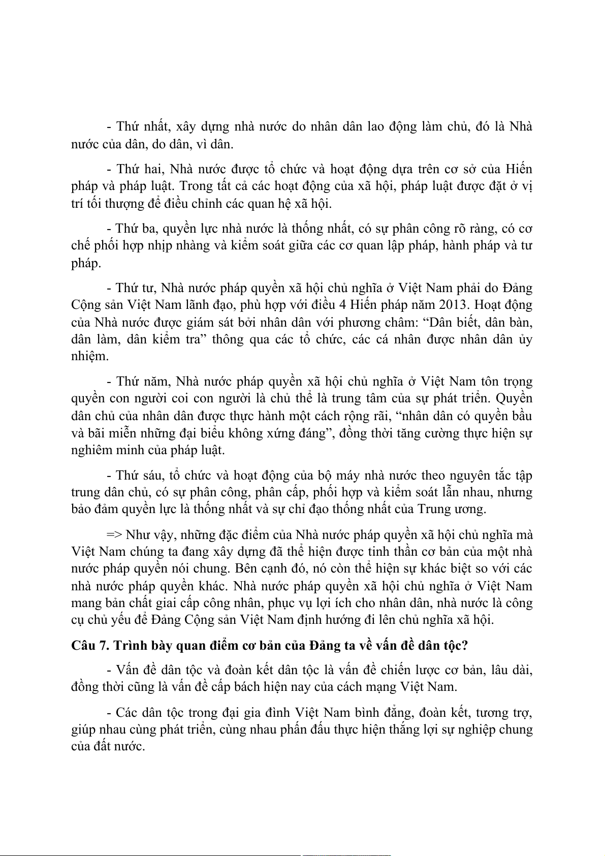 Câu 7. Trình bày quan điểm cơ bản của Đảng ta về vấn đề dân tộc?