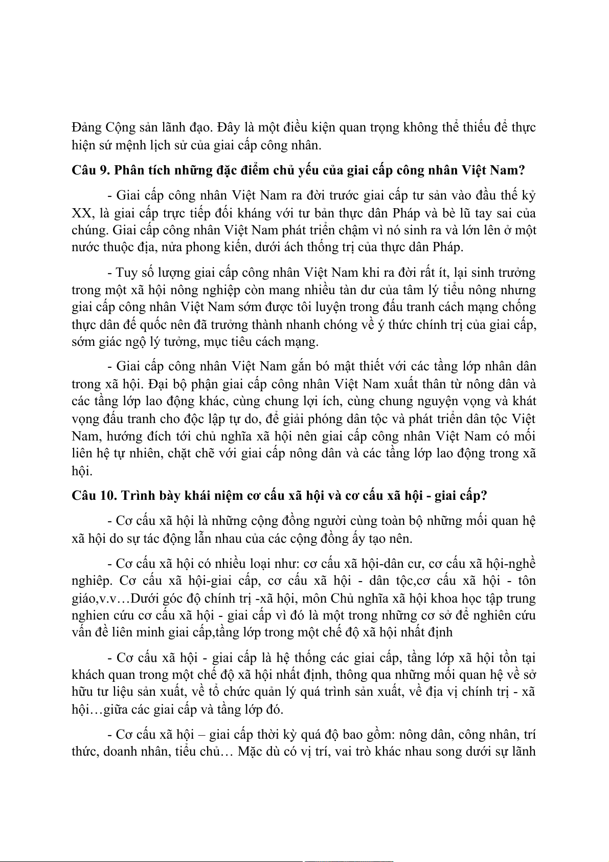 Câu 1. Trình bày tiền đề kinh tế xã hội cho sự ra đời của chủ nghĩa xã hội khoa học?