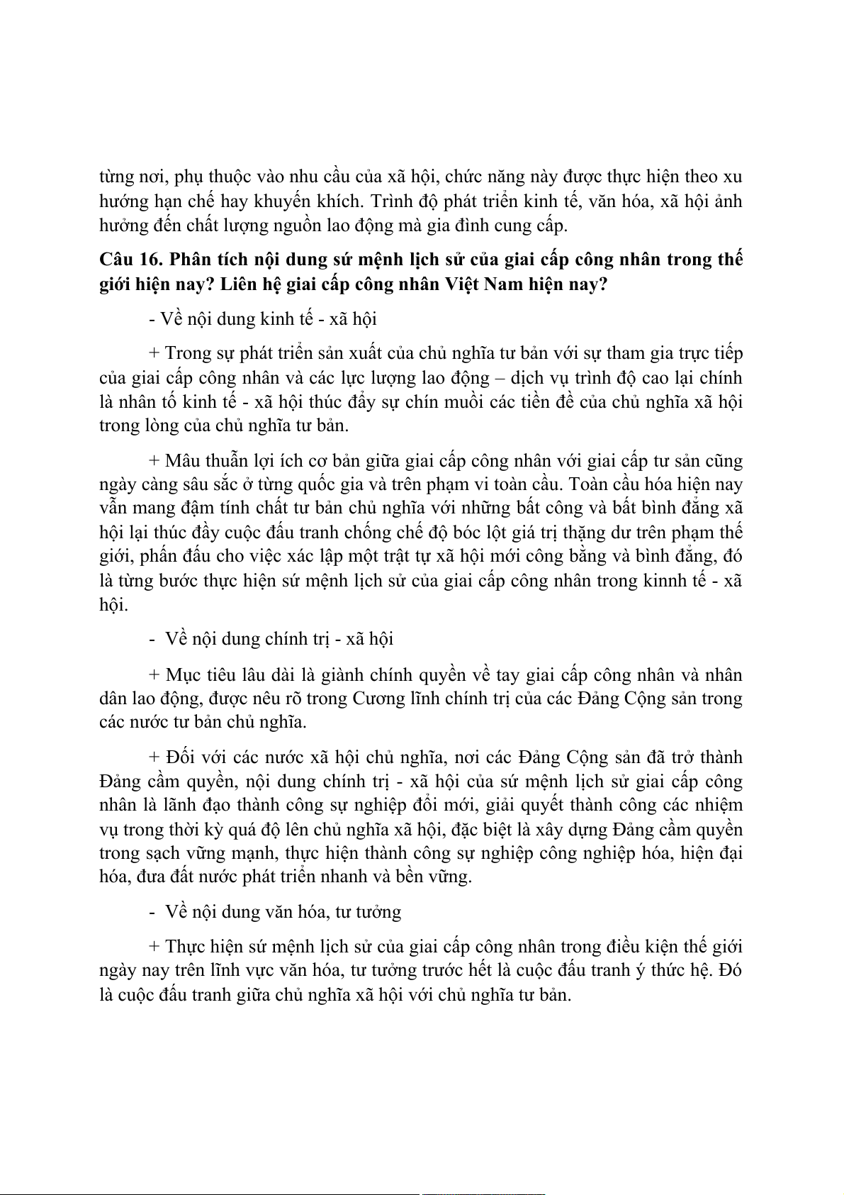 Câu 3. Trình bày những điều kiện khách quan quy định sứ mệnh lịch sử của giai cấp công nhân?