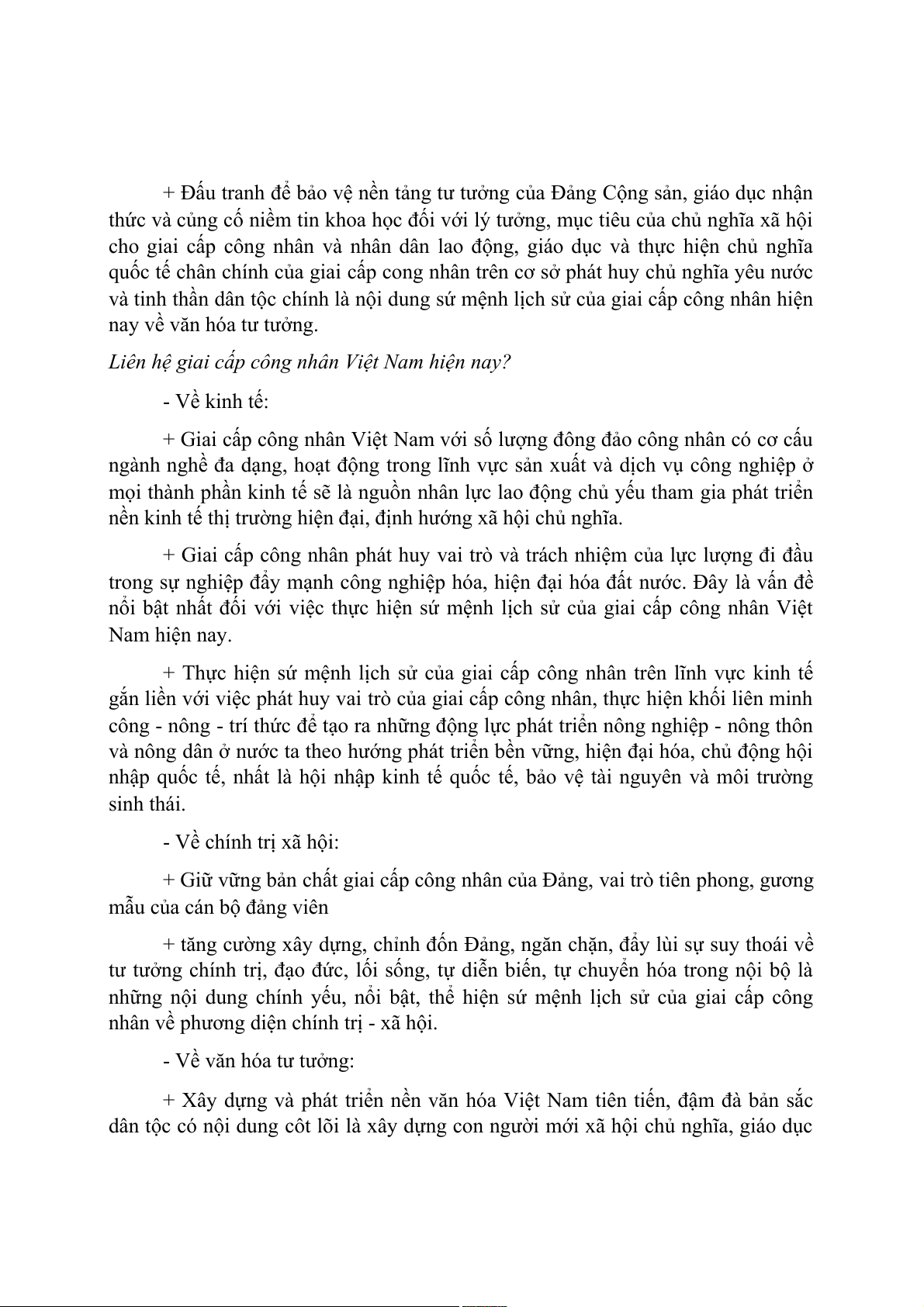 - Thứ hai, do địa vị chính trị - xã hội của giai cấp công nhân quy định.