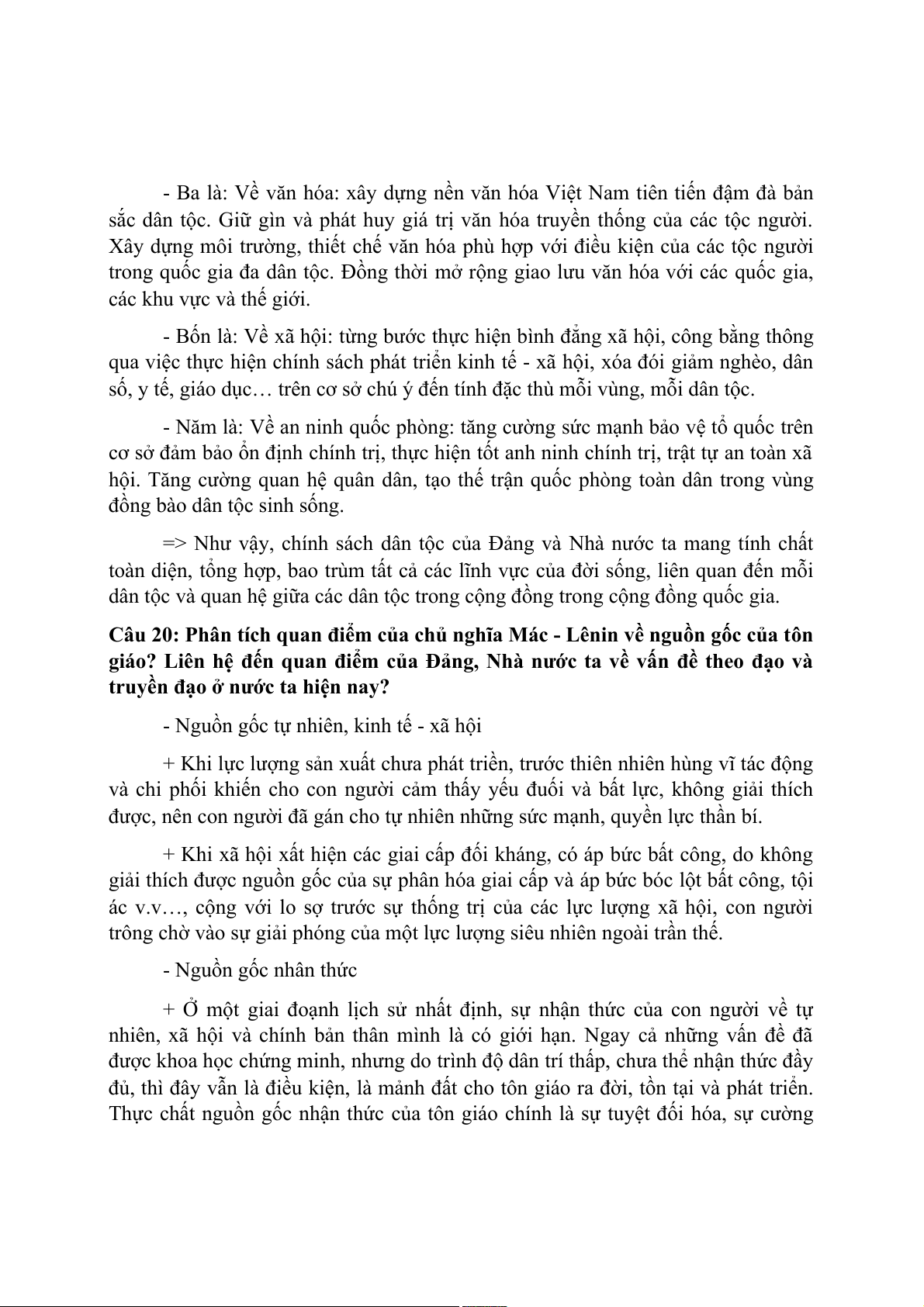 Câu 20: Phân tích quan điểm của chủ nghĩa Mác - Lênin về nguồn gốc của tôn