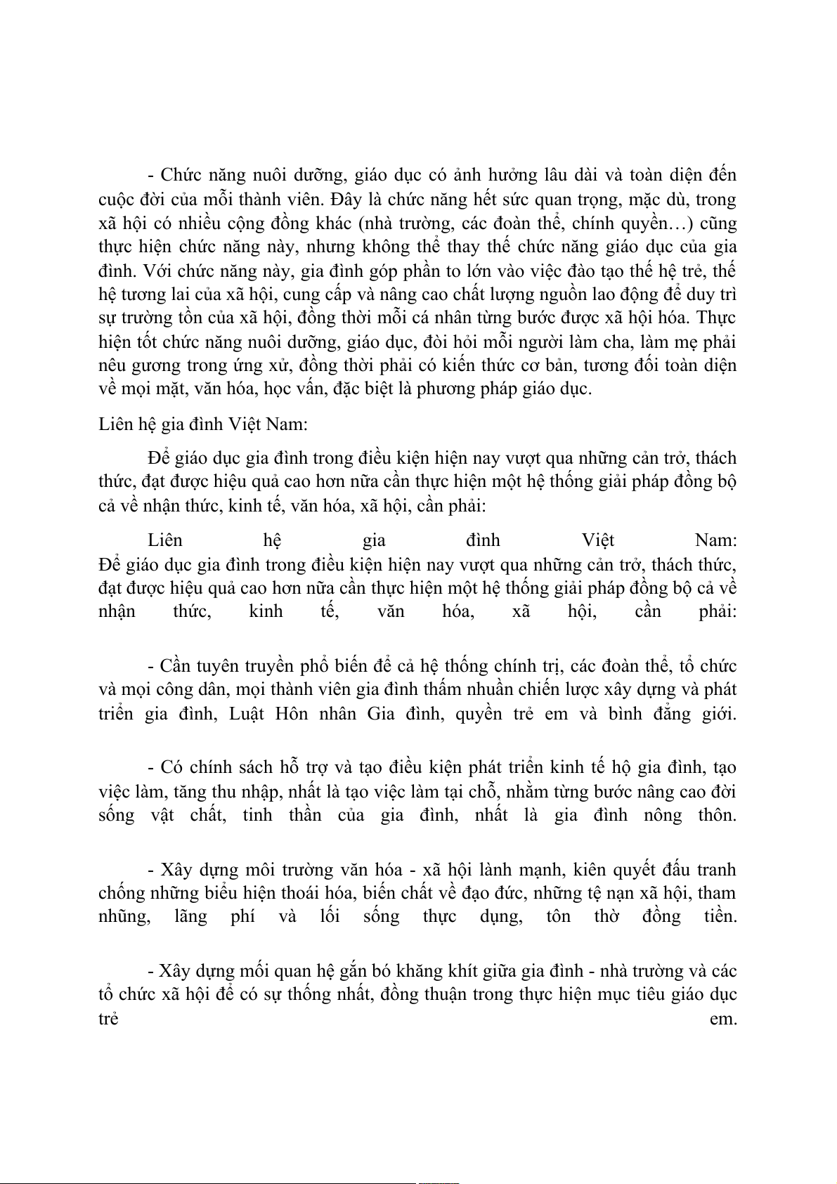 Câu 21: Phân tích chức năng nuôi dưỡng giáo dục của gia đình. Liên hệ gia đình Việt Nam