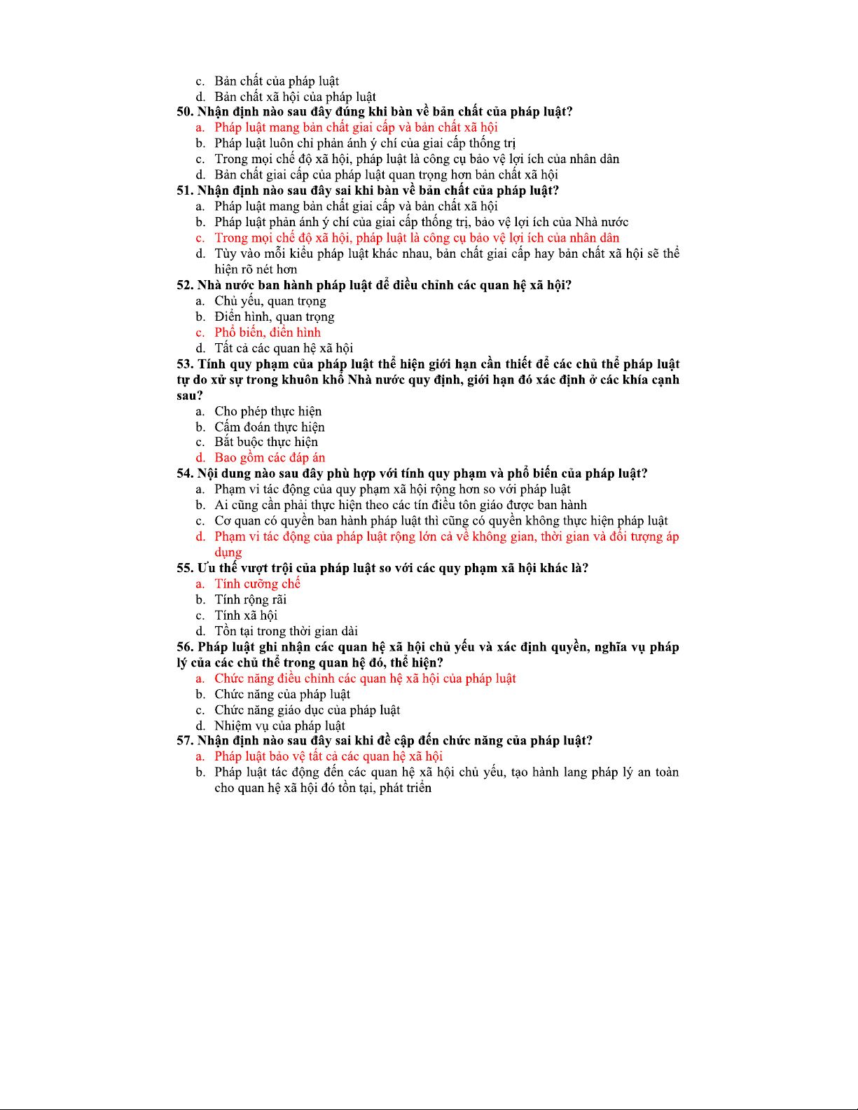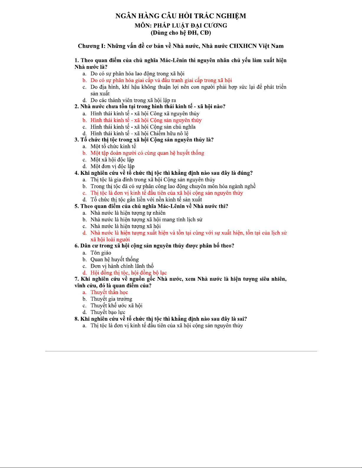 NGÂN HÀNG CÂU HỎI TRẮC NGHIỆM PHÁP LUẬT ĐẠI CƯƠNG (ĐH, CĐ)