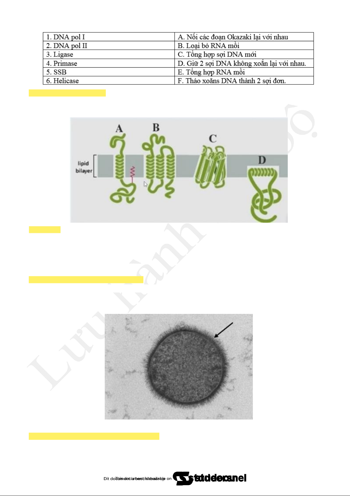 A. Derulase (hoặc Gyrase), Helicase, protein SSB