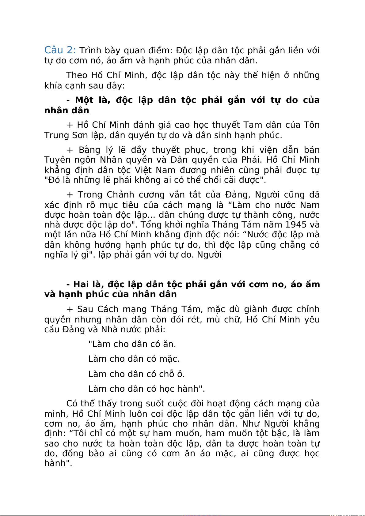 Câu 2: Trình bày quan điểm: Độc lập dân tộc phải gắn liền với