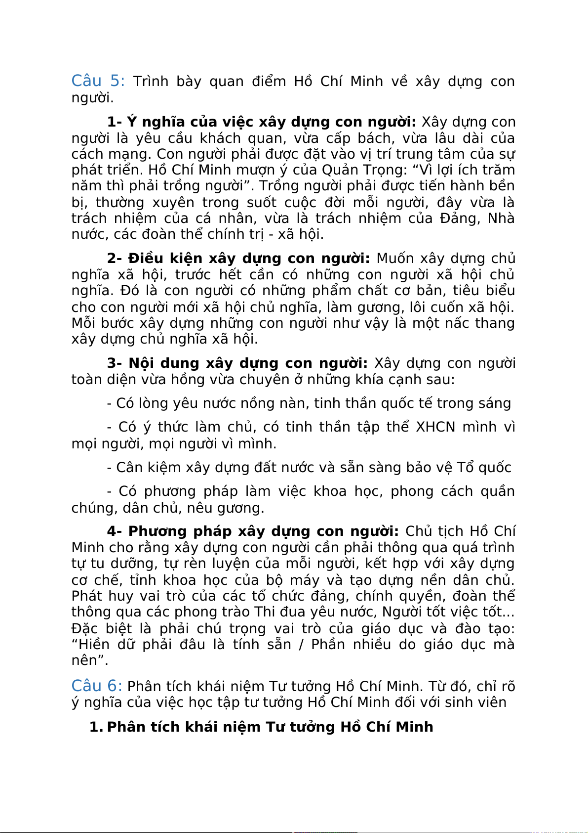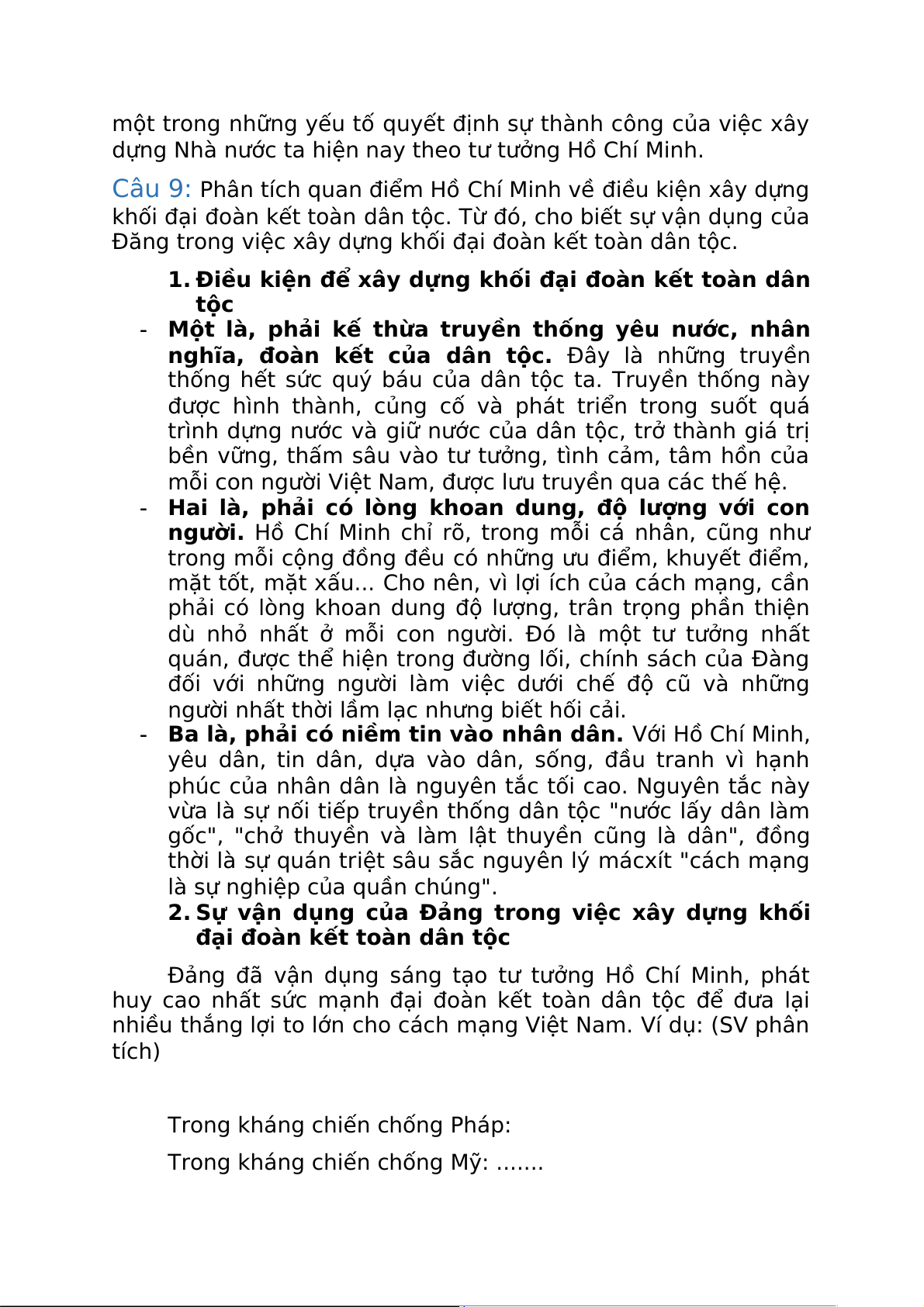 Câu 9: Phân tích quan điểm Hồ Chí Minh về điều kiện xây dựng