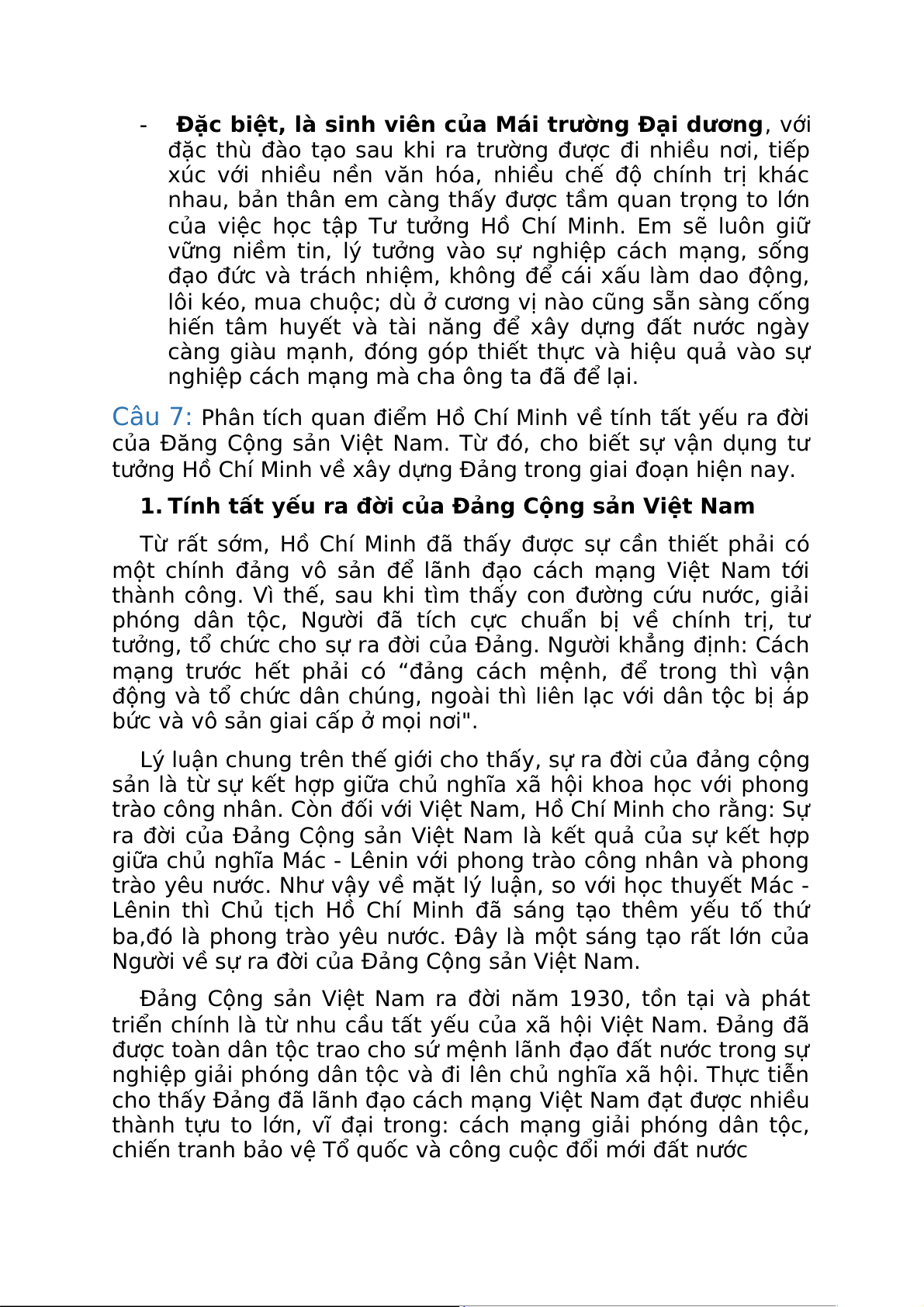 nhiều thắng lợi to lớn cho cách mạng Việt Nam. Ví dụ: (SV phân tích)