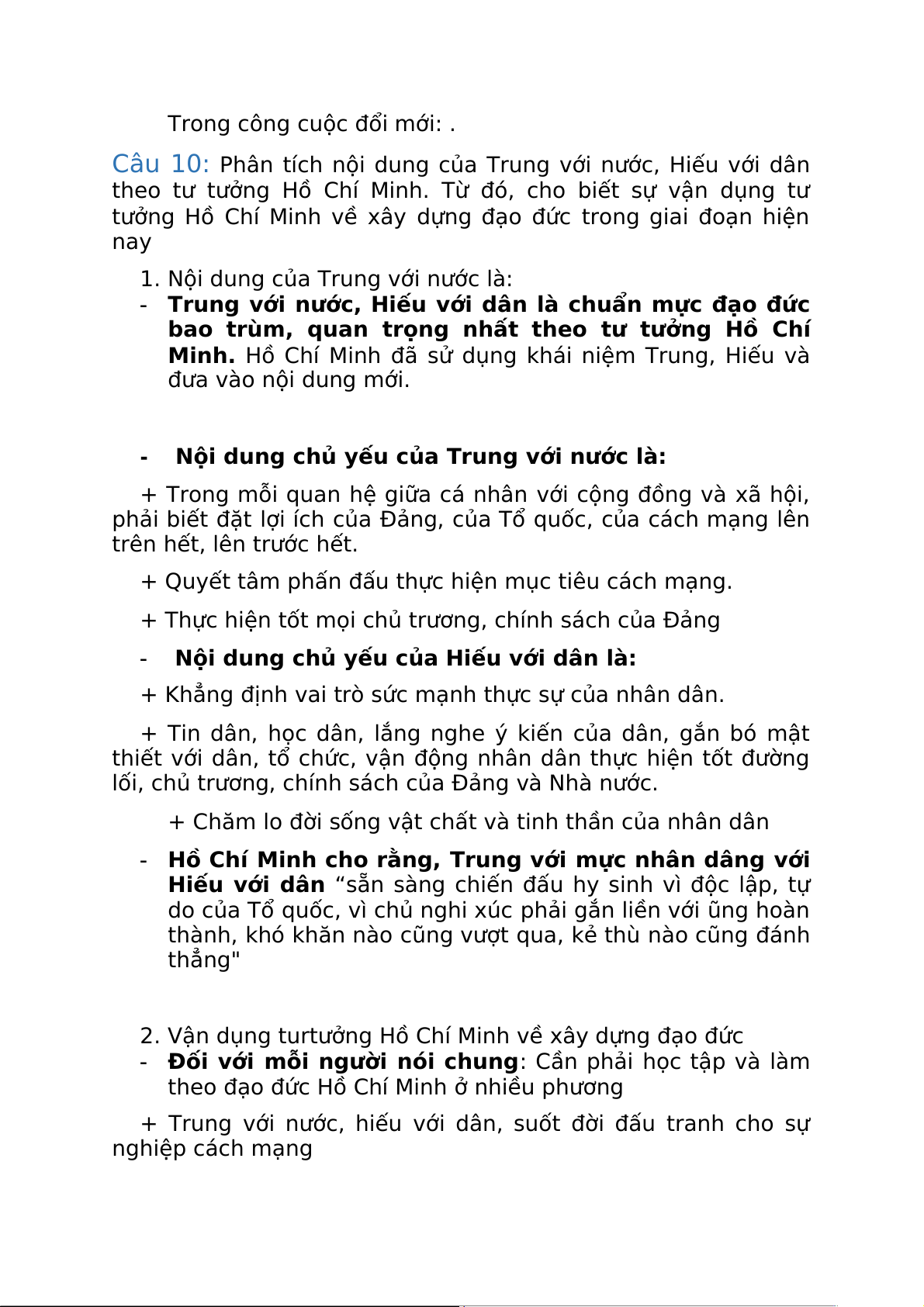 Câu 10: Phân tích nội dung của Trung với nước, Hiếu với dân
