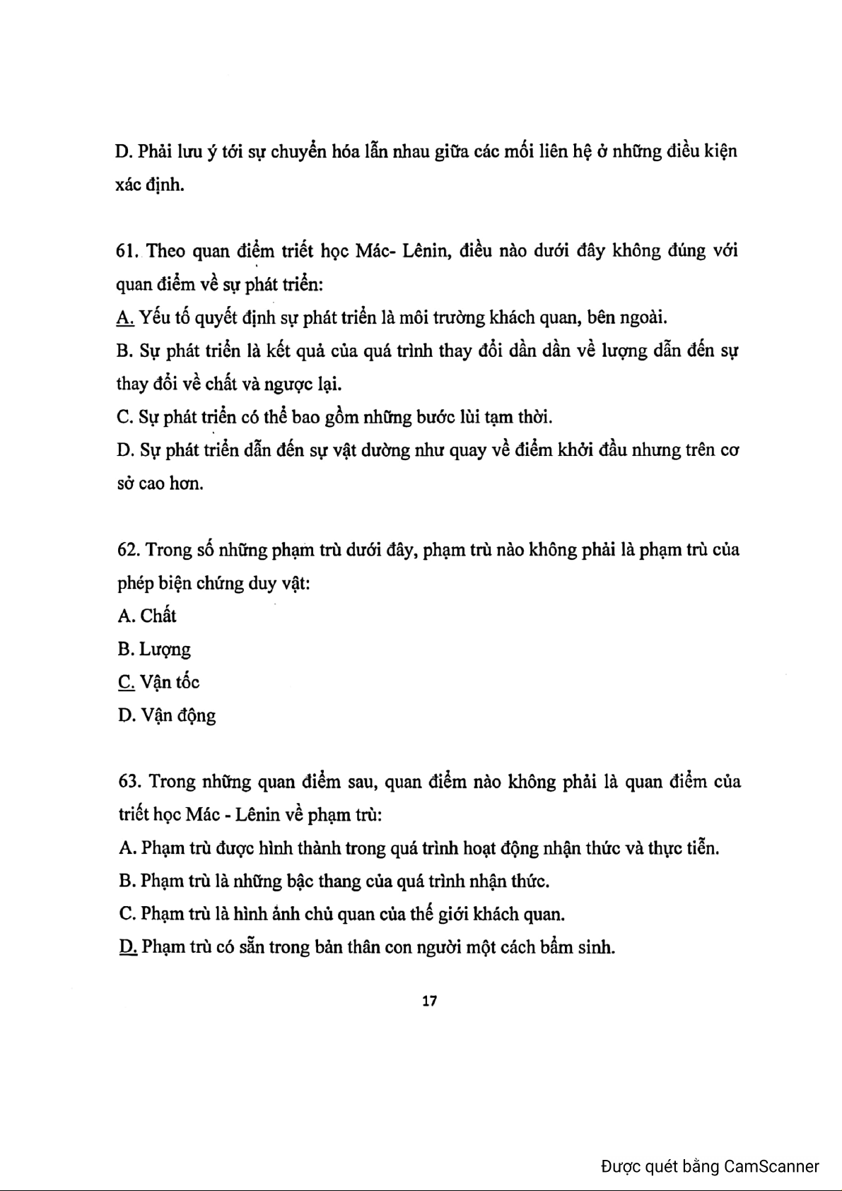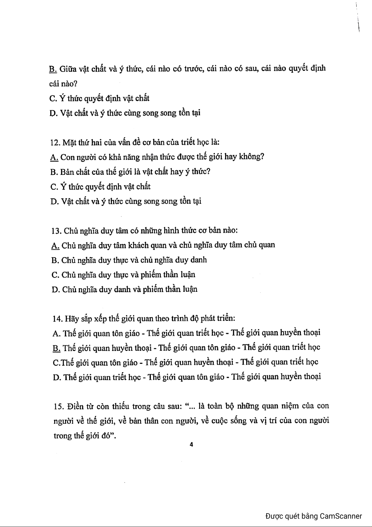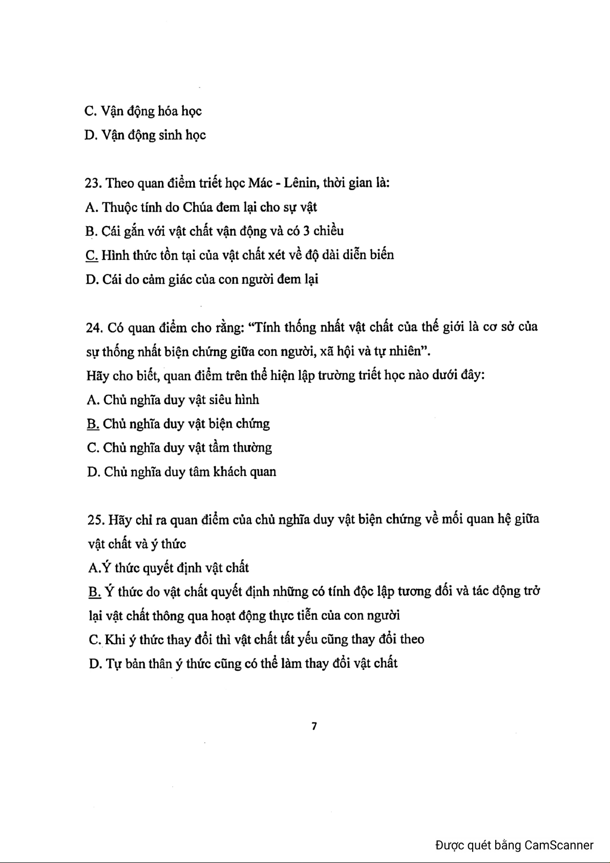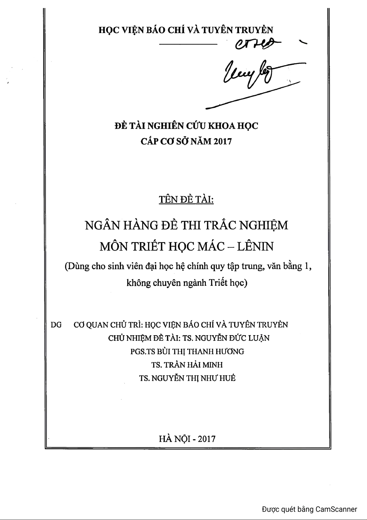 Ngân hàng đề thi trắc nghiệm môn Triết học Mác – Lênin | Học viện Báo chí và Tuyên truyền
