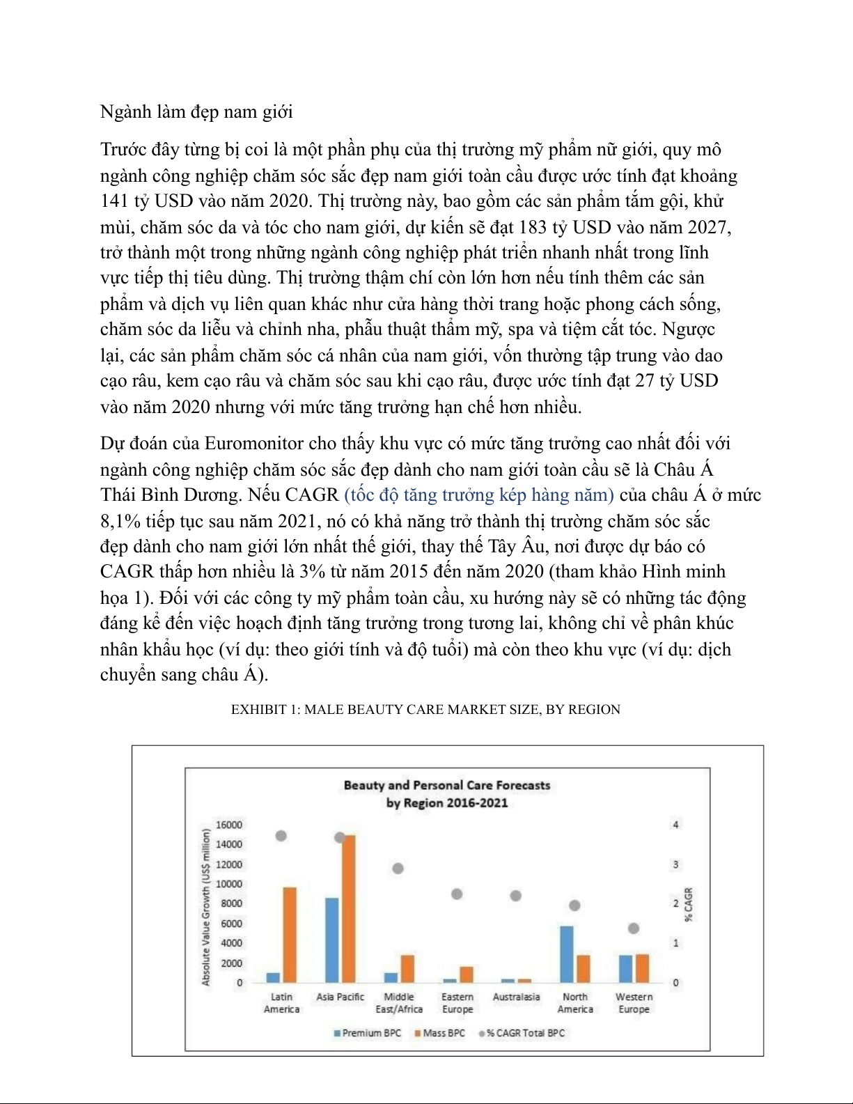 ngành công nghiệp chăm sóc sắc đẹp dành cho nam giới toàn cầu sẽ là Châu Á