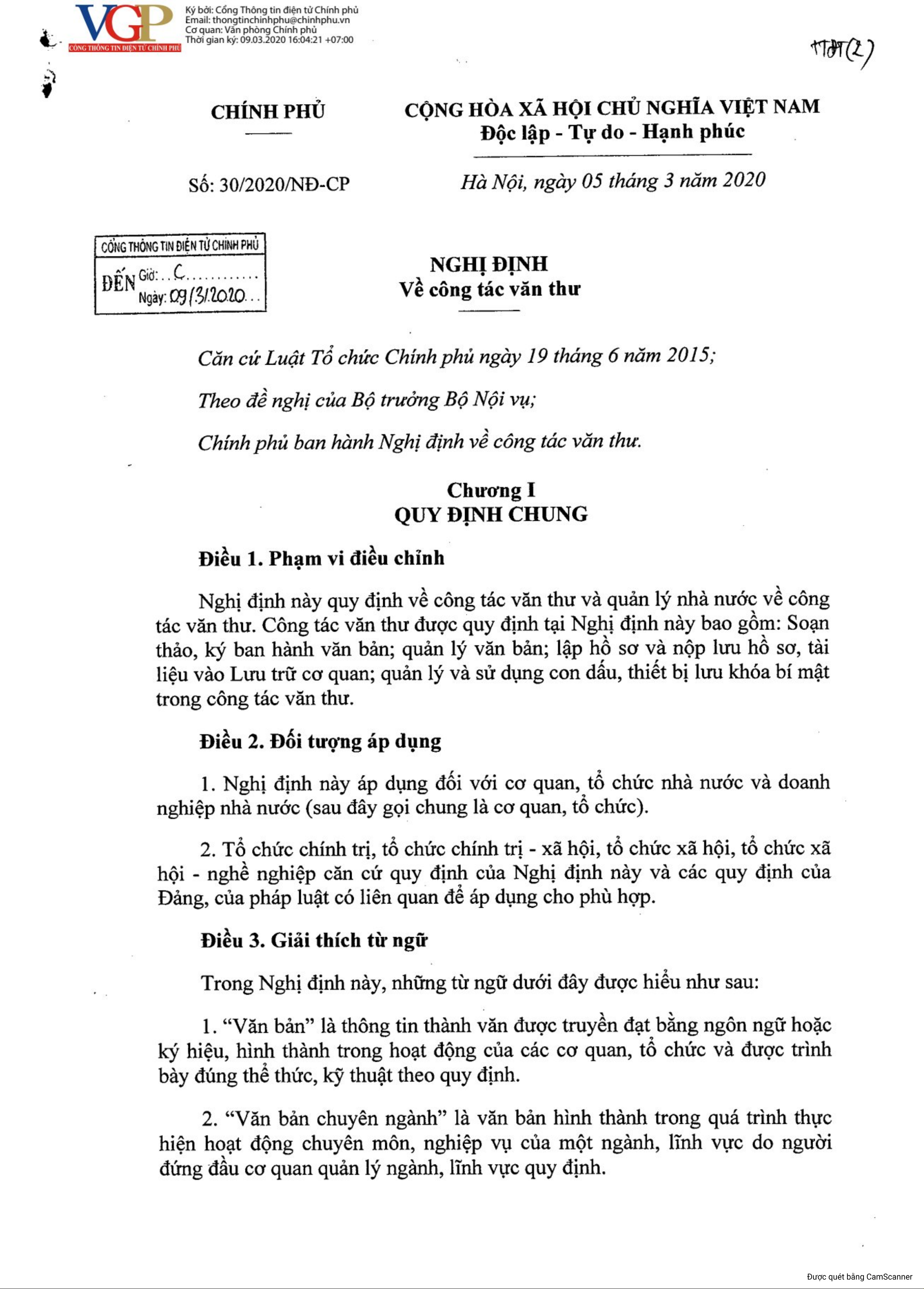 Nghị định về Công tác văn thư - Số 30/2020/ND-CP | Văn bản pháp luật