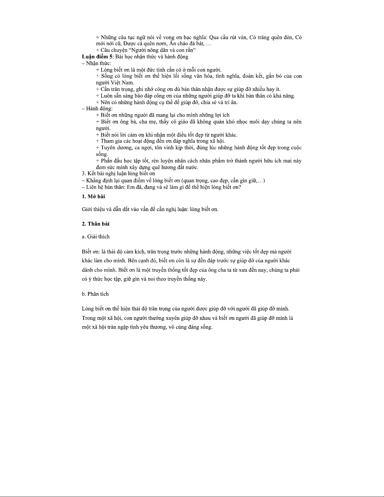 Nghị luận về Lòng Biết Ơn - Mẫu Dàn Ý và Phân Tích