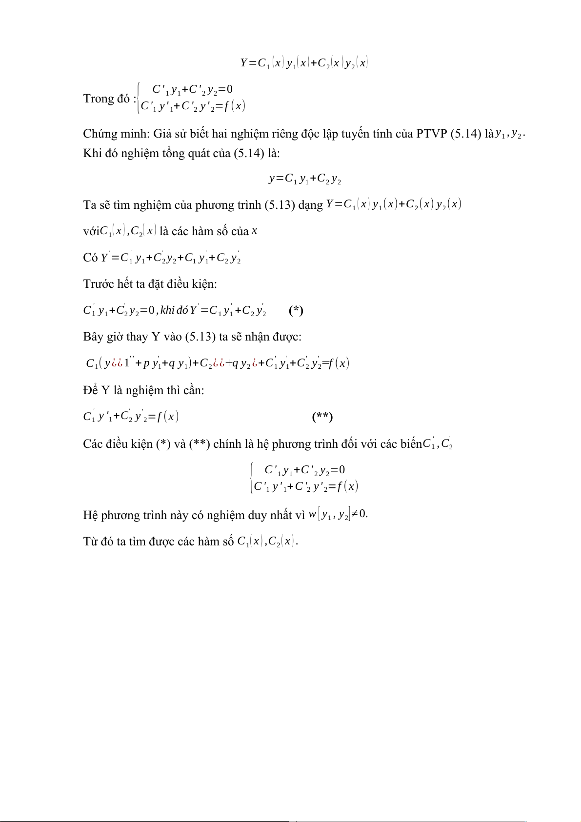 Ta sẽ tìm nghiệm của phương trình (5.13) dạng Y =C ( x ) y (x)+C (x) ( ) 2 y2 x 1 1