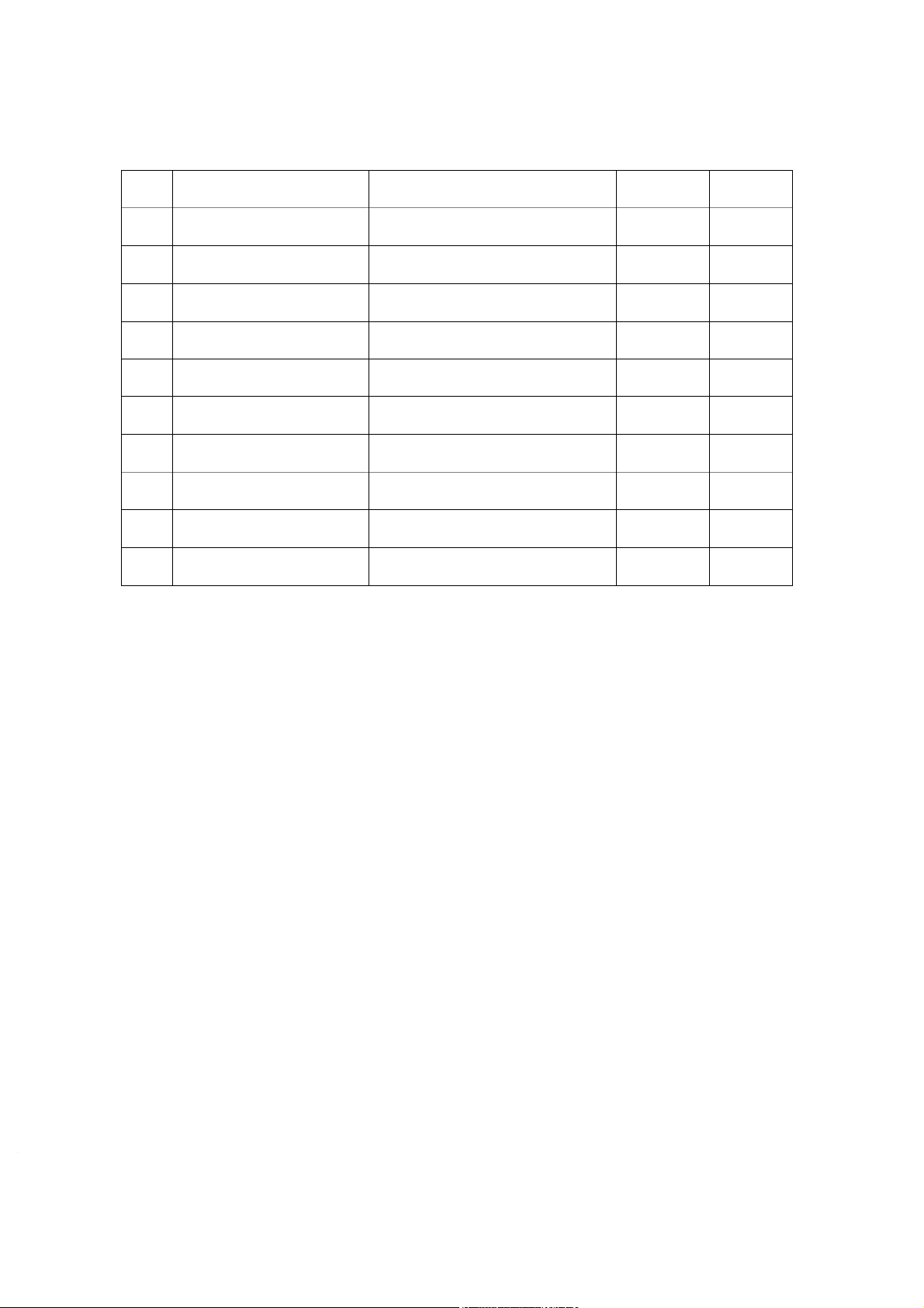 khảo được sử dụng cầu hiện 7. Phụ lục Phiếu phỏng vấn, Đạt 31/10 Cả nhóm phiếu khảo sát yêu cùng thực cầu hiện 8. Tổng hợp, Chỉnh sửa cận Đạt 3/11 Tăng Thị chỉnh sử Word thận, đầy đủ yêu Mai Hương cầu 3 9. Thiết kế PowerPoint sinh Đạt 5/11 Vũ Tú Linh PowerPoint động, đủ ý yêu cầu 10. Thuyết trình