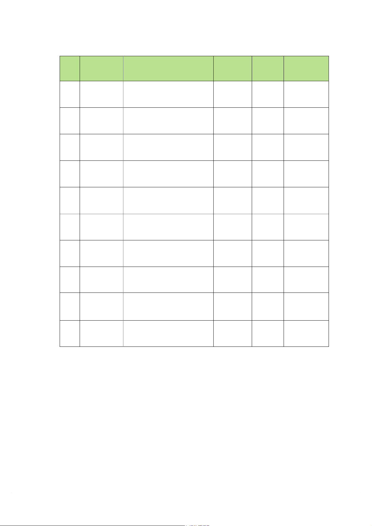 BẢNG ĐÁNH GIÁ THÀNH VIÊN NHÓM Mã sinh Đánh STT Họ và tên LHC Ghi chú viên giá Dương Thị Thanh Tuấn 31 22D252072 K58B1LN Lan Nhóm 32 22D252076 Bùi Đoàn Diệu Linh K58B1LN trưởng 33 22D252077 Bùi Thị Diệu Linh K58B2LN 34 22D252080 Nguyễn Mai Linh K58B1LN 35 22D252081 Ninh Đỗ Bảo Linh K58B2LN 36 22D252084 Phạm Thùy Linh K58B1LN 37 22D252085 Trần Thị Linh K58B2LN 38 22D252091 Lưu Thanh Luyến K58B1LN Thư ký 39 22D252092 Trần Thị Luyến K58B2LN 40 22D252095 Đỗ Thị Lý K58B1LN 7