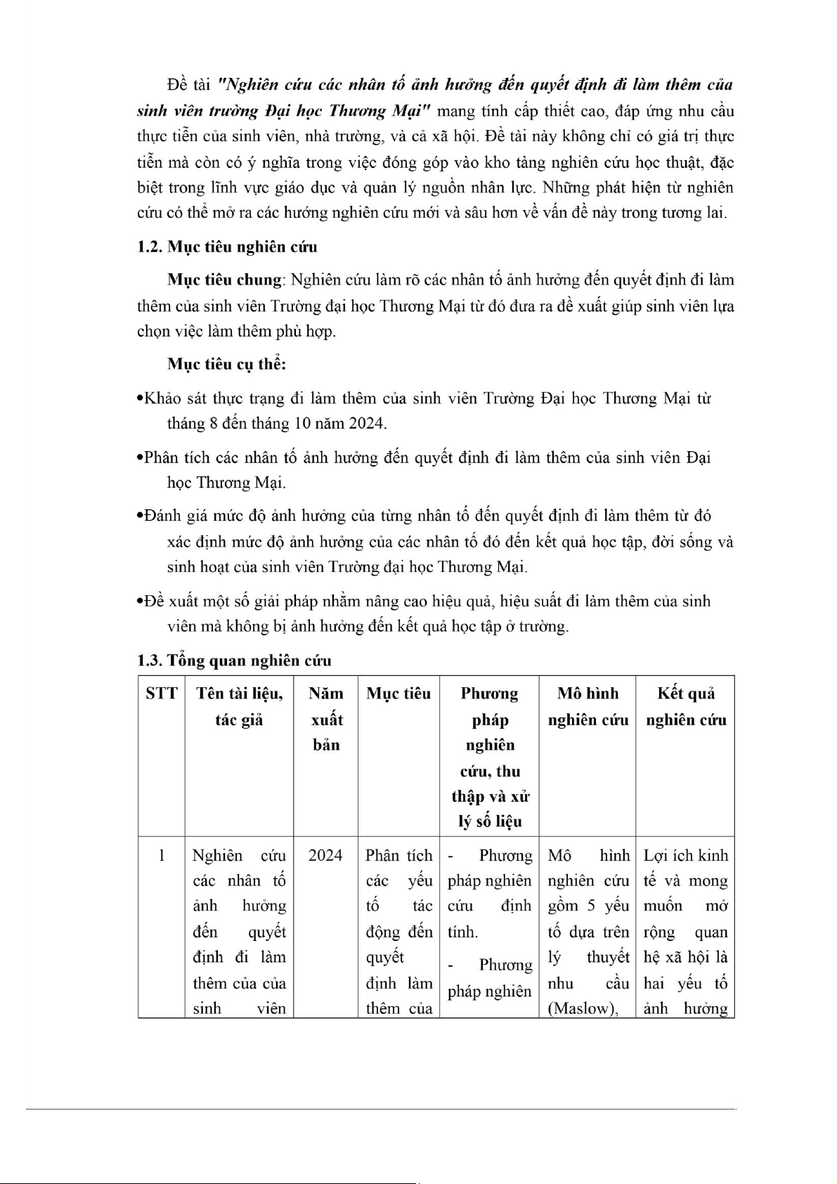 yếu tố ảnh hưởng đến quyết định đi làm thêm của sinh viên tr ường Đại học Thương Mại) 5 * Thời điểm: 1 1/09/2024