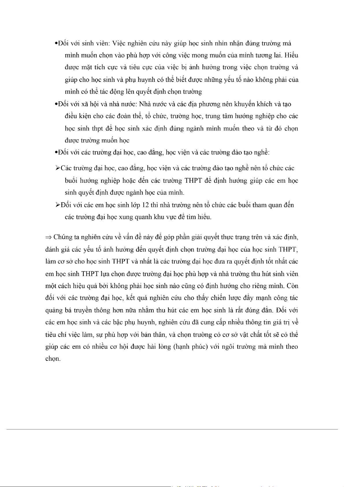 tác động đến quyết định chọn trường của s inh viên và những mong muốn c ủa học sinh