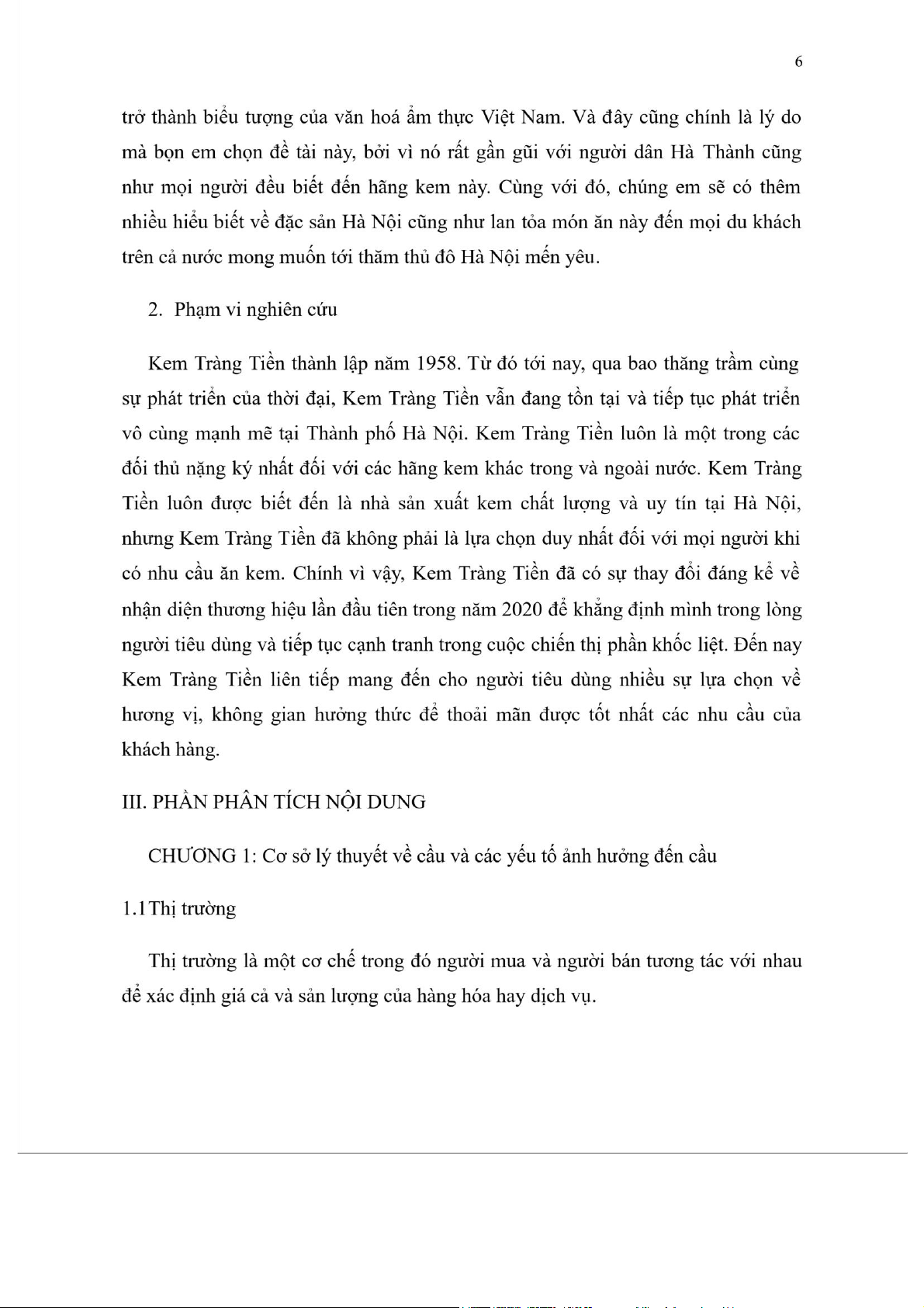 “Các yếu tố ảnh hưởng đến cầu của sản phẩm Kem Tràng Tiền