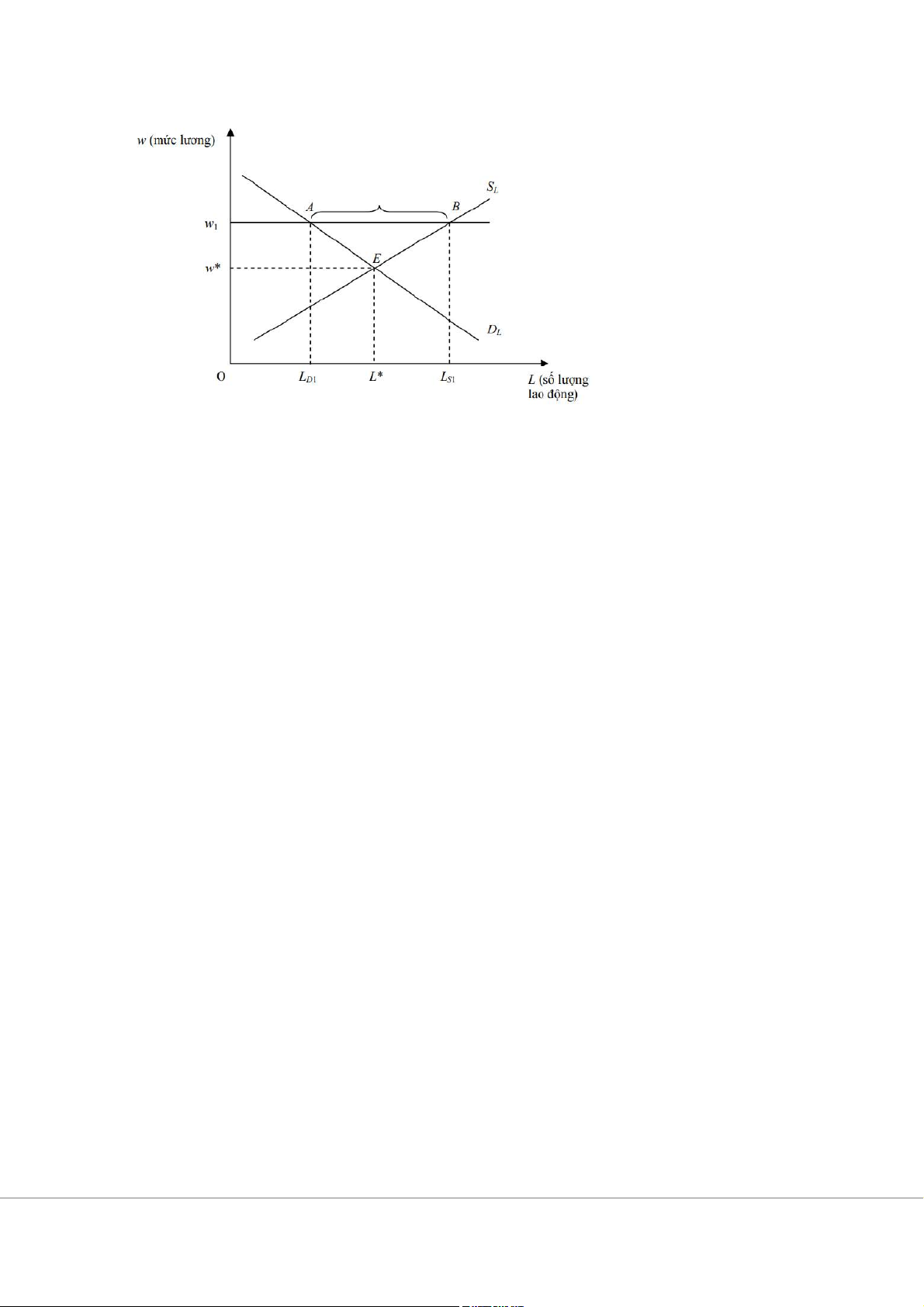 w*. Tại mức lương w1, lượng cầu về lao động của các doanh nghiệp giảm xuống thành