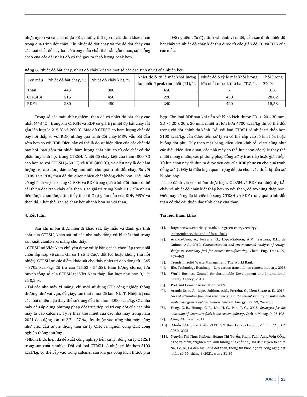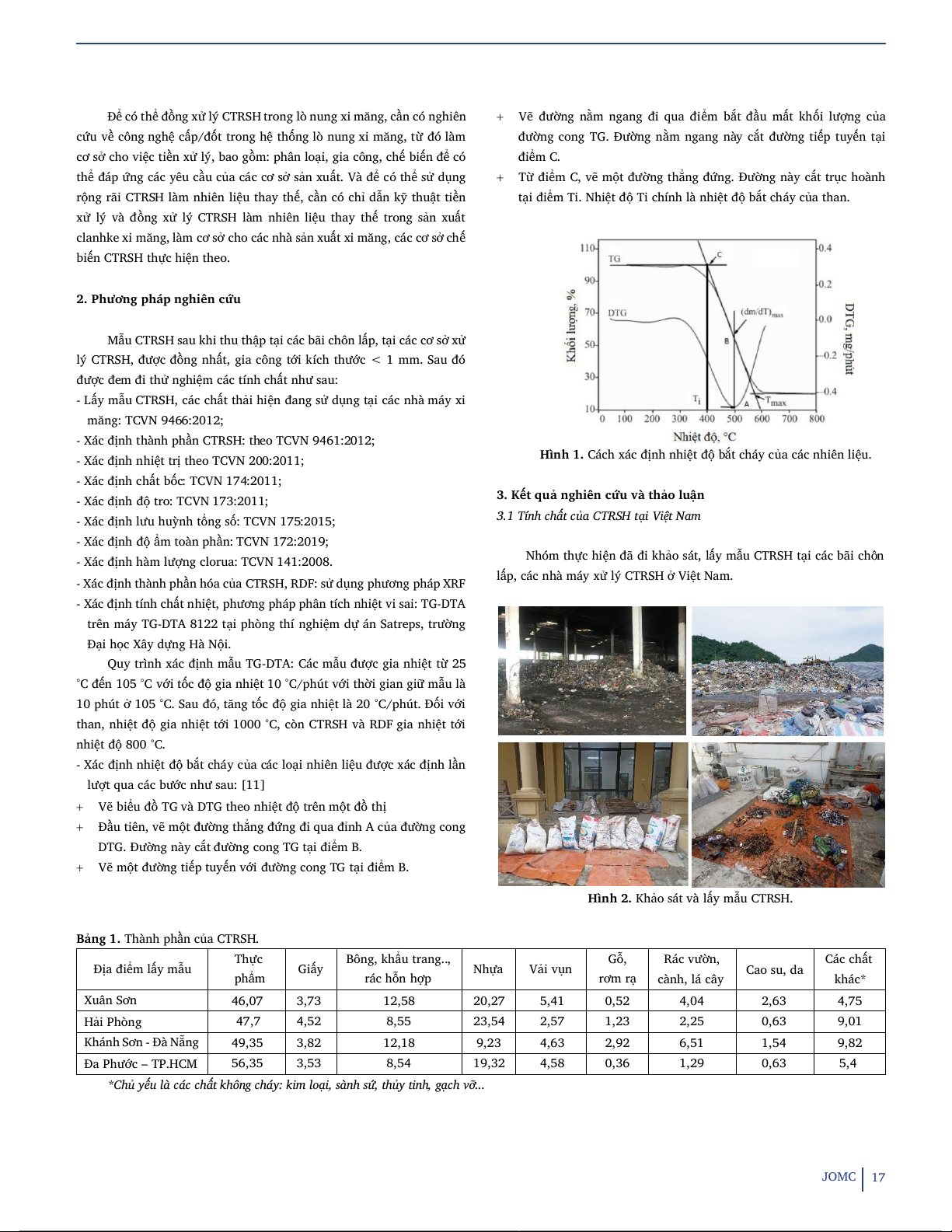 đốt cháy hoàn toàn. Để phân tích sâu hơn, do CTRSH chứa vải vụn, túi JOMC 21
