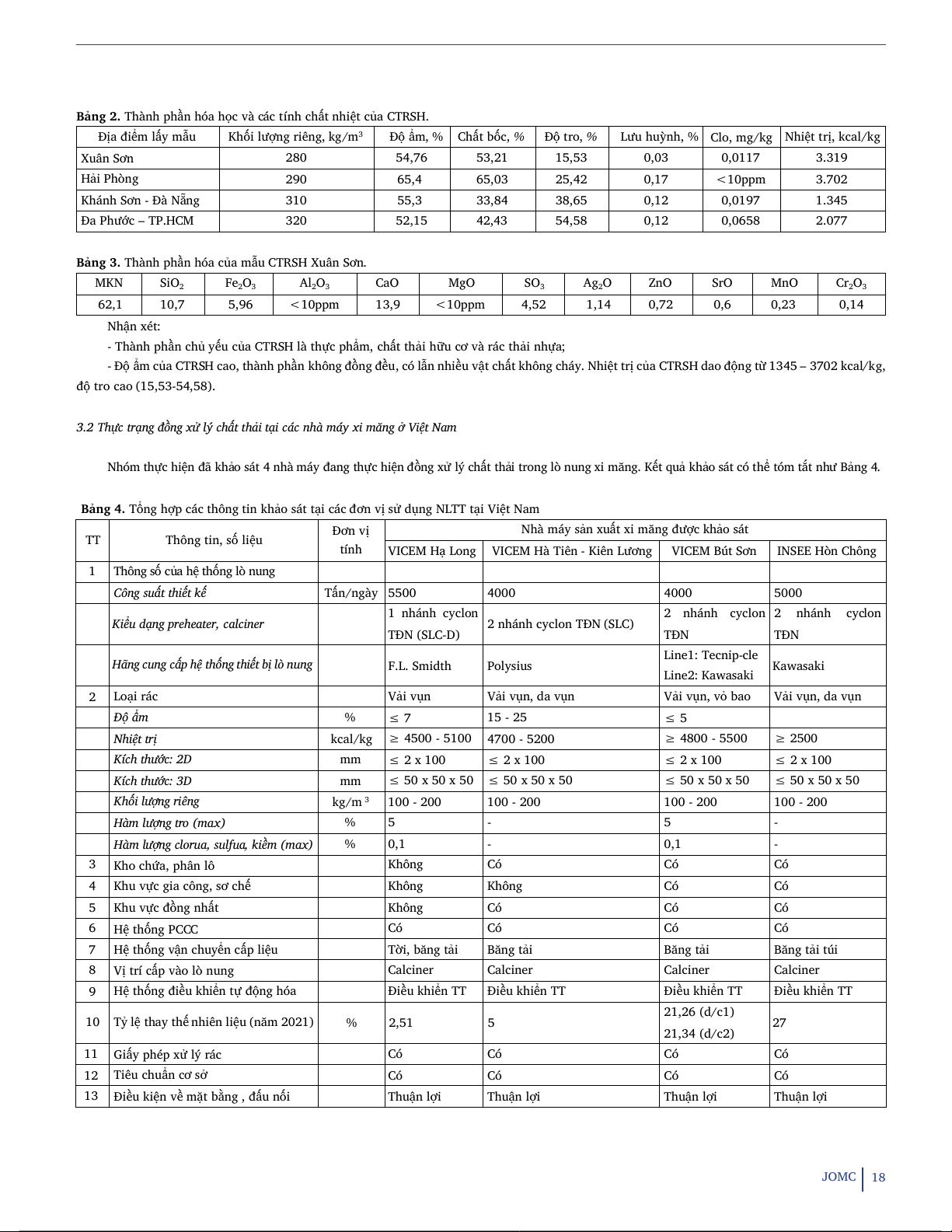 chất của CTRSH, khảo sát tại các nhà máy đồng xử lý chất thải trong