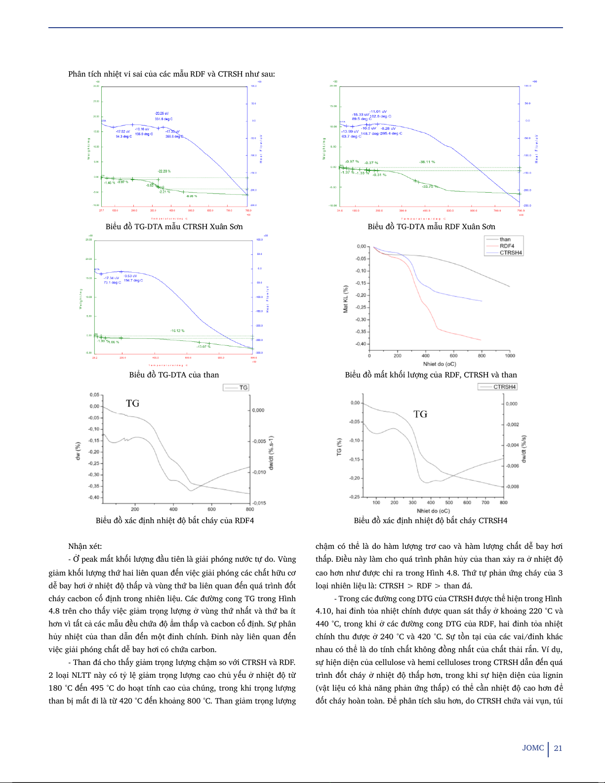lớn nhất ở peak thứ nhất (T1), o C lớn nhất ở peak thứ hai (T2), oC tro, % Than 443 800 450 - 31,8 CTRSH4 215 450 220 450 28,02 RDF4 280 480 240 420 15,53
