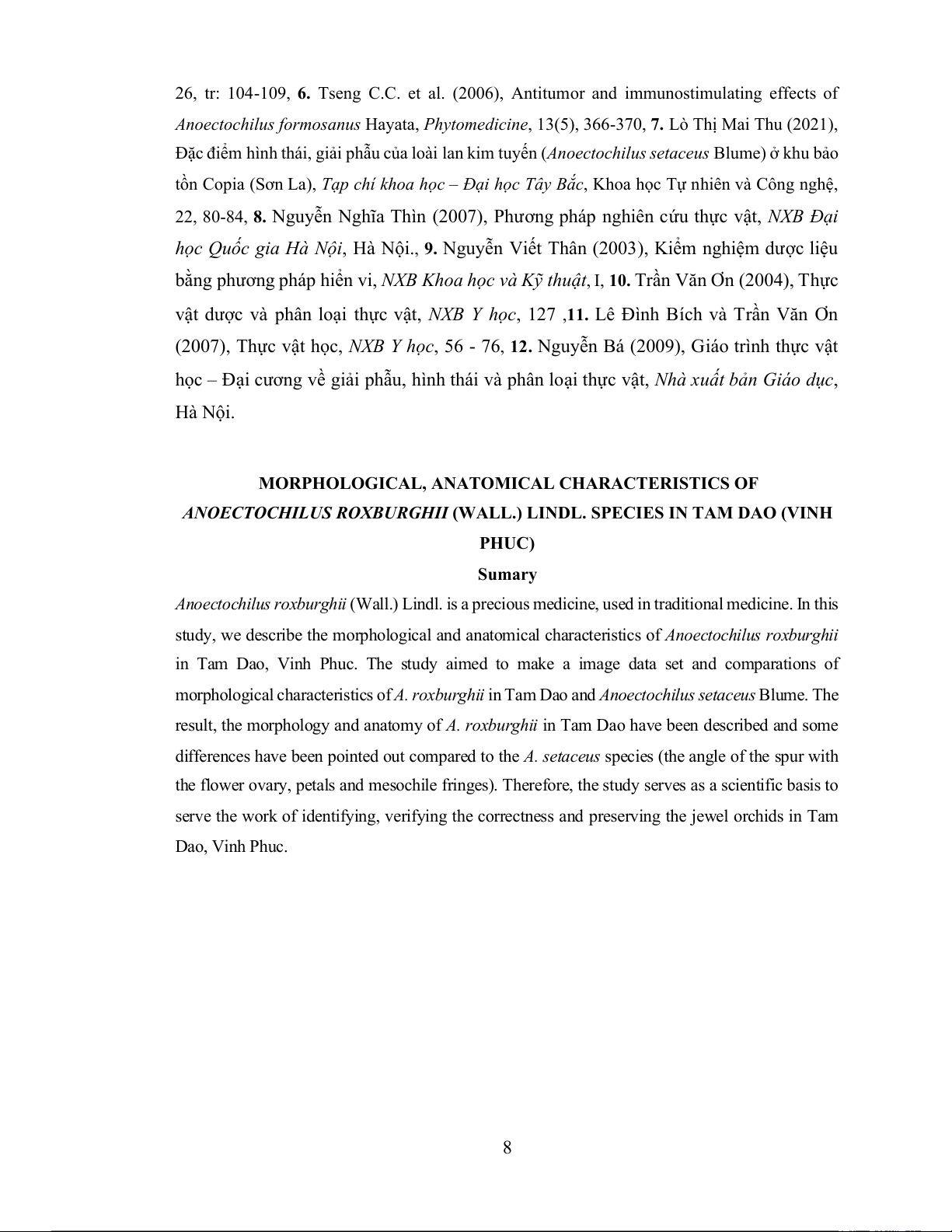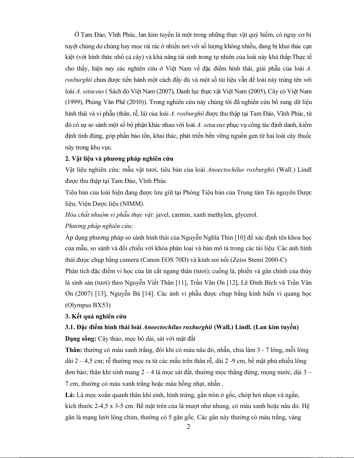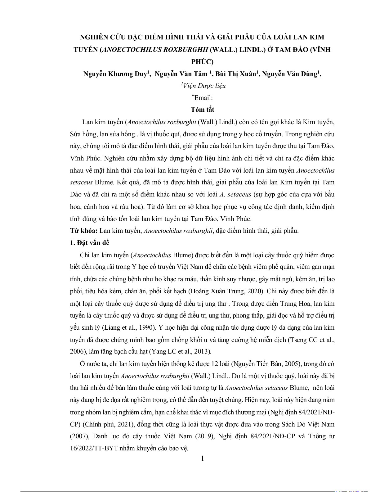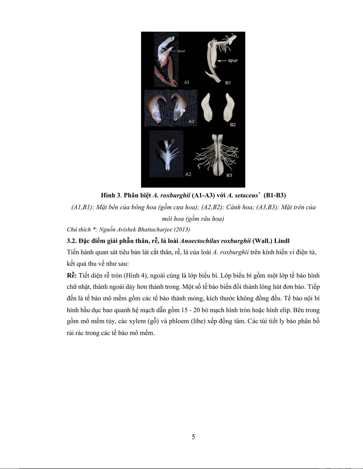 Từ khóa: Lan kim tuyến, Anoectochilus roxburghii, đặc điểm hình thái, giải phẫu.