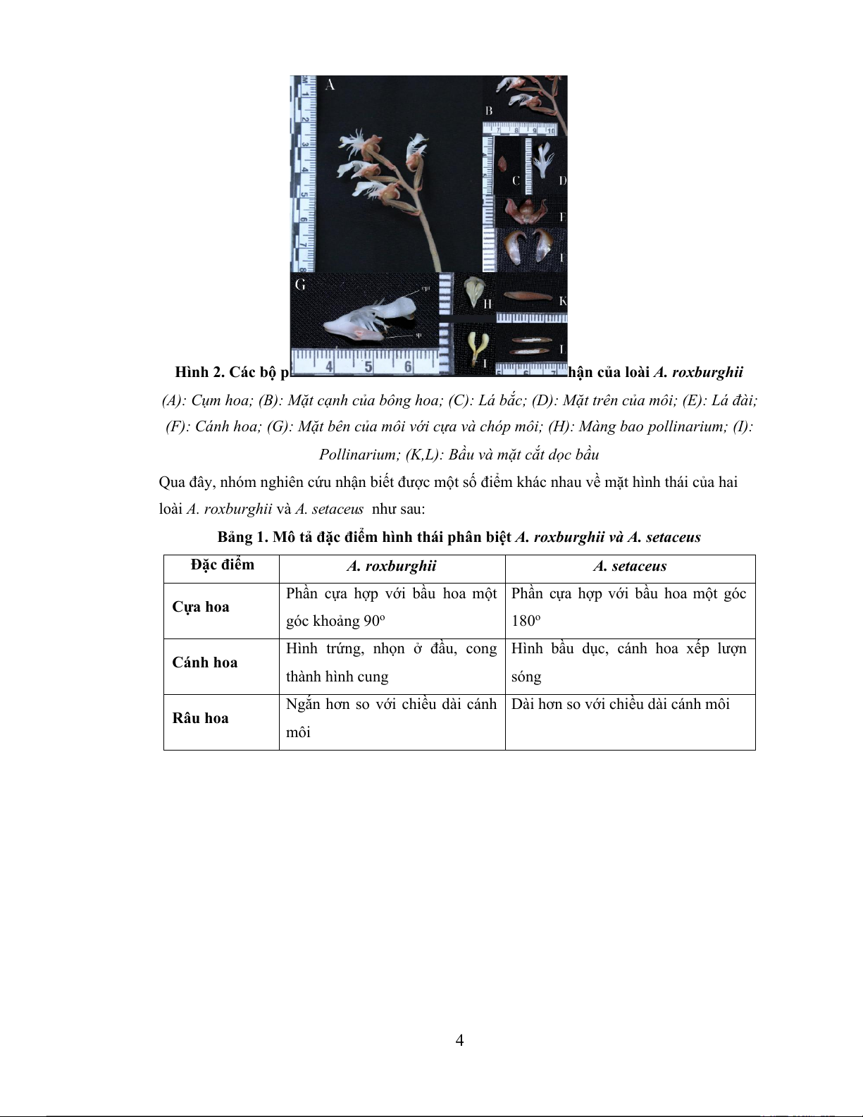 Ngắn hơn so với chiều dài cánh Dài hơn so với chiều dài cánh môi Râu hoa môi 4 Hình 3 Phân bi . ệt (A1-A3) v A. roxburghii