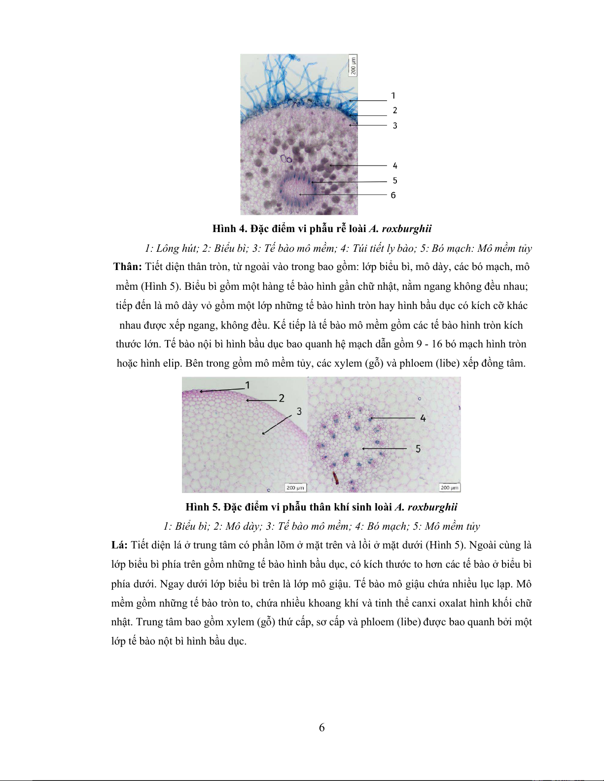 hình thái và vi phẫu (thân, rễ, lá) của loài A. roxburghii được thu thập tại Tam Đảo, Vĩnh Phúc, từ
